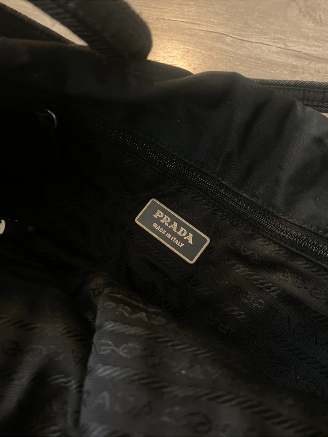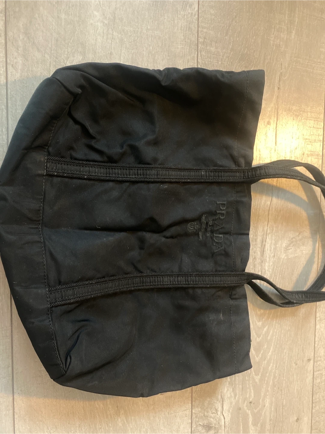 Selling a classic black Prada tote bag! It's a stylish and versatile piece, perfect for everyday use. The bag features the Prada logo and is made of durable material. It has some signs of wear, but still has plenty of life left! Bought from a vintage Japan store that checked for authenticity.