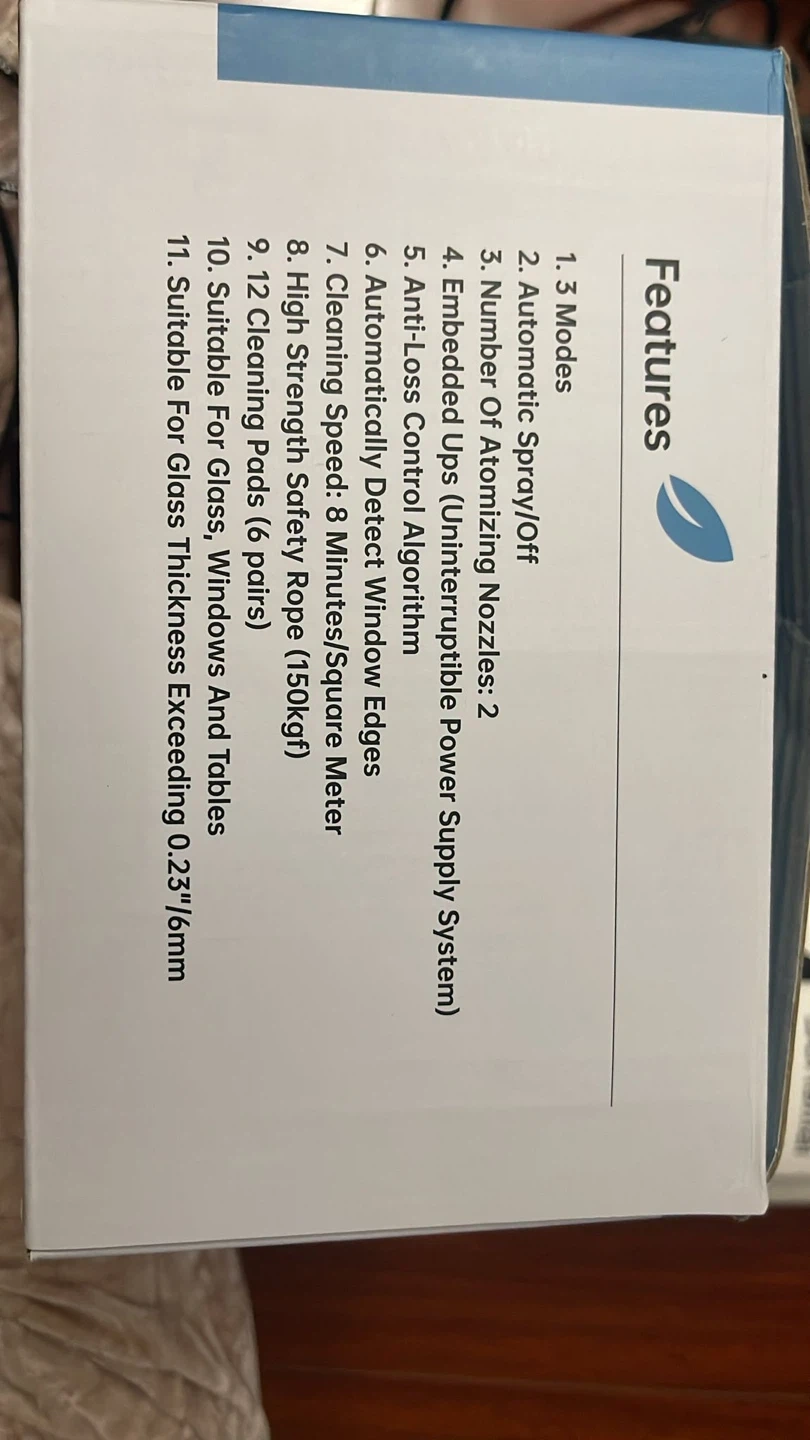 Selling a SUNSMAI window cleaning robot! It comes with the original box and includes a remote control, cleaning pads, and safety rope. This robot features automatic spray, embedded UPS, and anti-loss control. It's suitable for glass, windows, and tables, and can handle glass thicknesses exceeding 0.23"/6mm