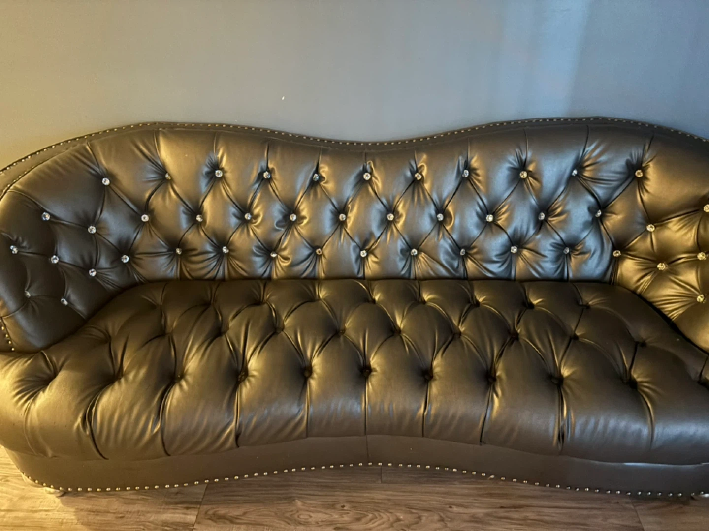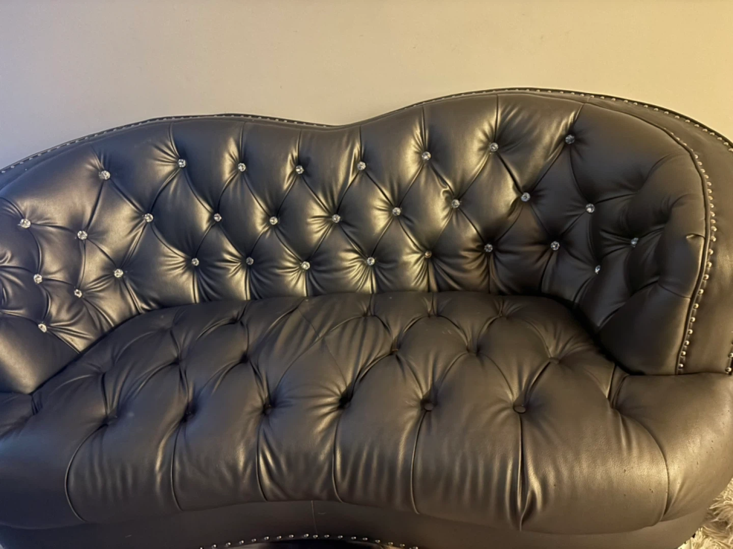 Selling a stylish tufted loveseat. It's a beautiful piece with a unique design. There are some minor signs of wear, but overall it's in good condition and ready to add some flair to your living space includes 3 person couch, loveseat and possibly an arm chair all matching.