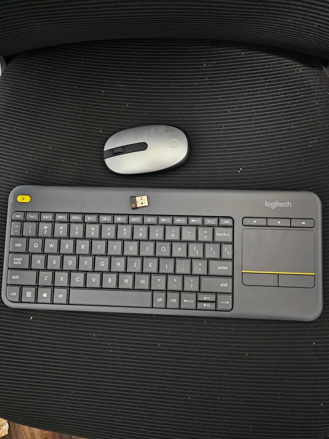 This Logitech wireless keyboard and HP mouse combo is perfect for a tidy workspace. Keyboard connects wirelessly with a USB receiver. The keyboard includes a built-in trackpad for easy navigation. This set is ideal for anyone looking to streamline their computer setup!