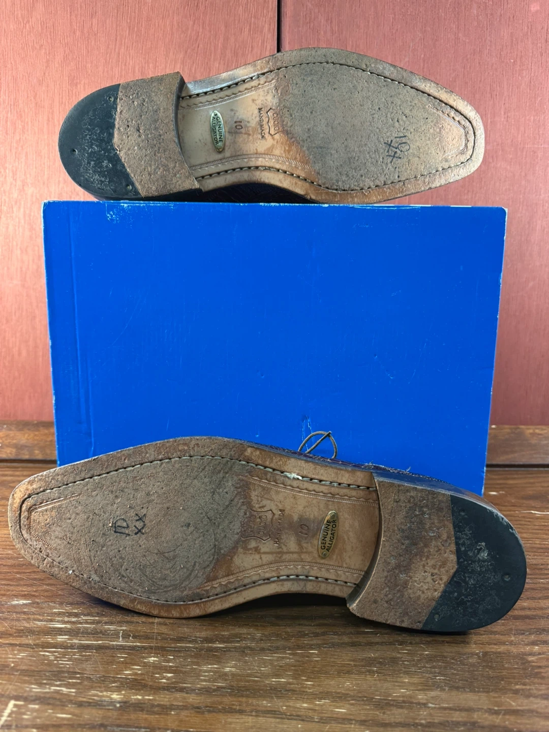Step out in style with these gently used Belvedere Studio genuine Alligator š dress shoes, a luxurious addition to any gentleman's wardrobe in US size 10. These shoes feature a unique alligator skin pattern and are made in Mexico.