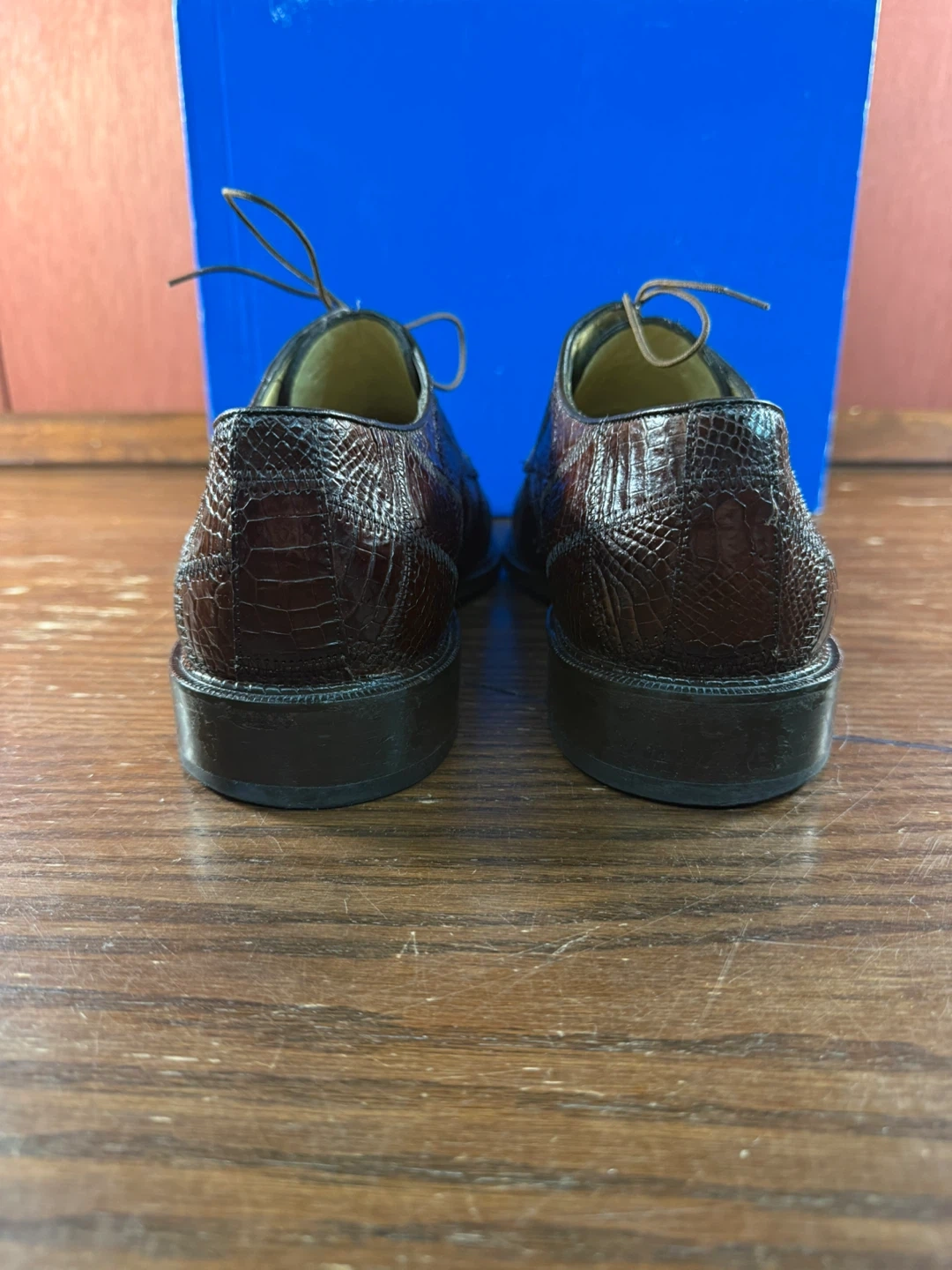 Handmade Belvedere Studio dress shoes crafted from genuine alligator leather.