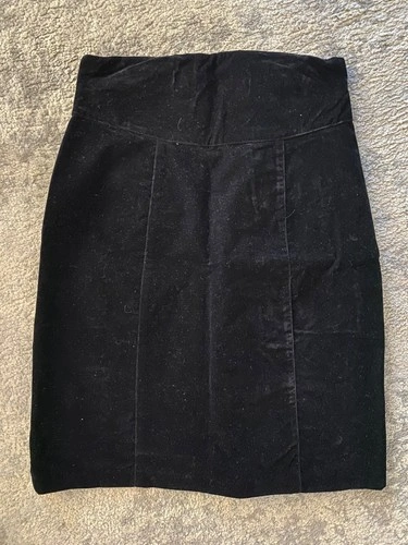 Vintage black velvet skirt, size 7 which fits like a small. There is slight tearing below the zipper which can be easily fixed.