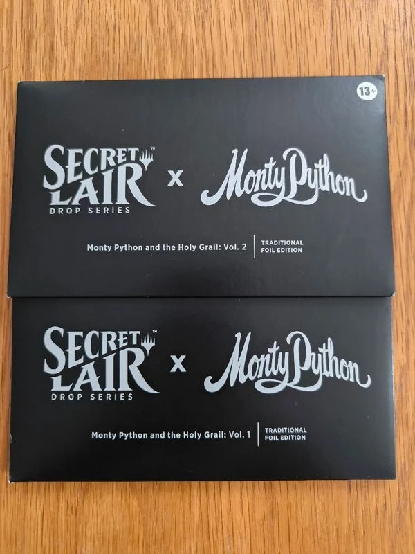 Two traditional foil edition Secret Lair drops. Includes Monty Python and the Holy Grail Vol. 1 and Vol. 2.
