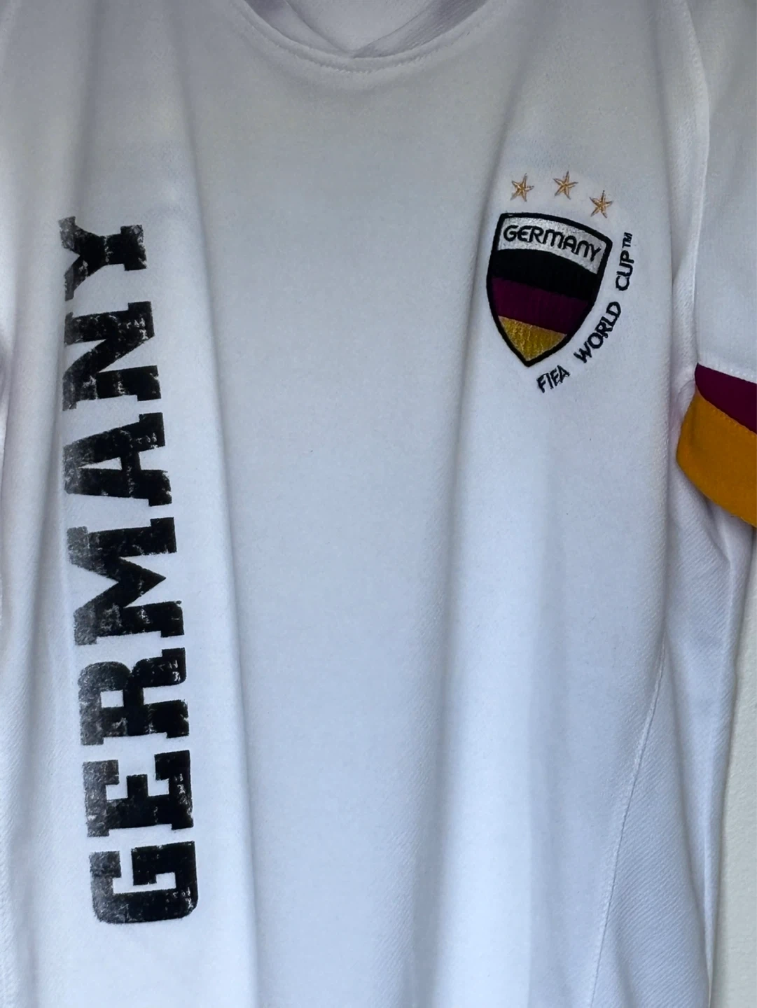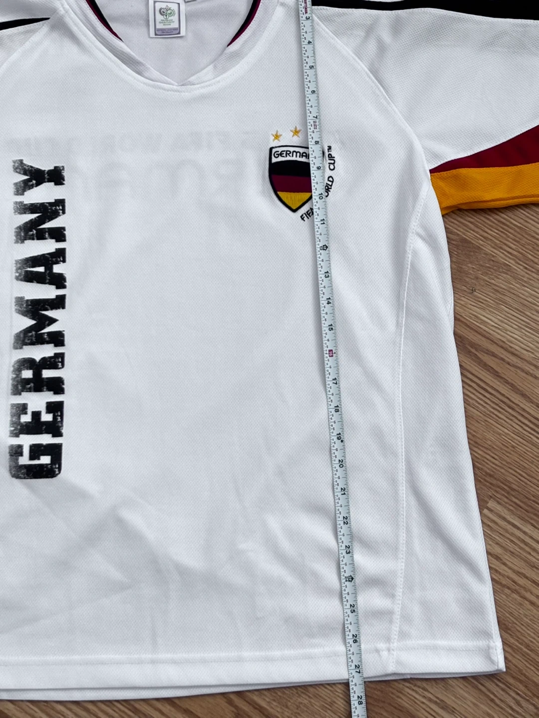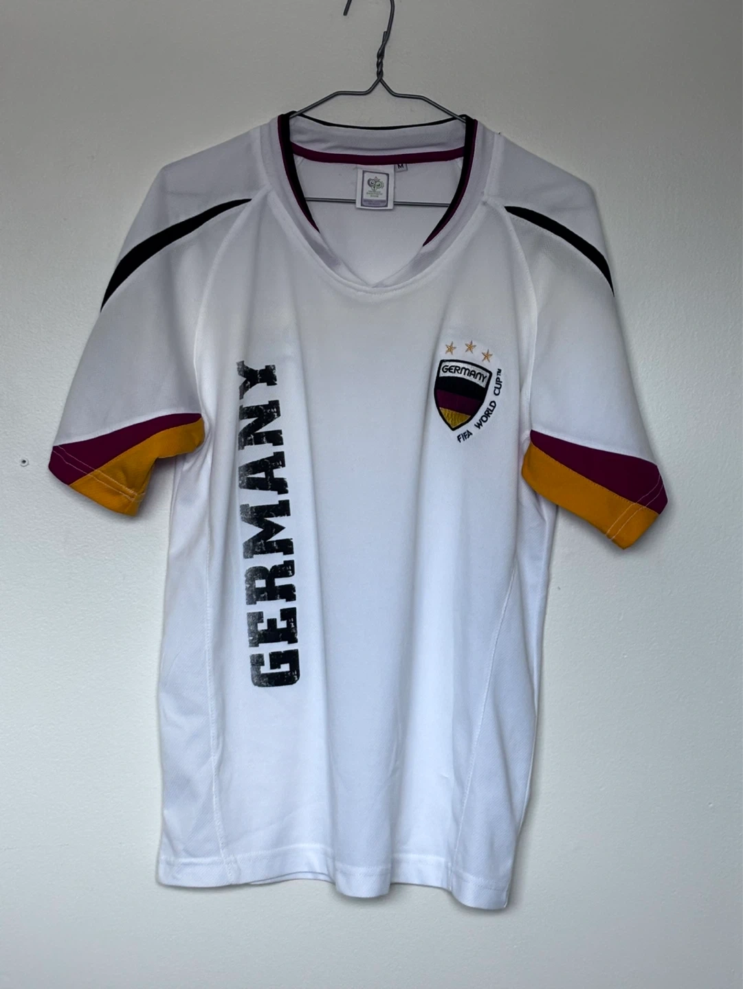Official licensed product for the 2006 FIFA World Cup in Germany. Features 'Germany' printed vertically on the front and across the back. Size medium.