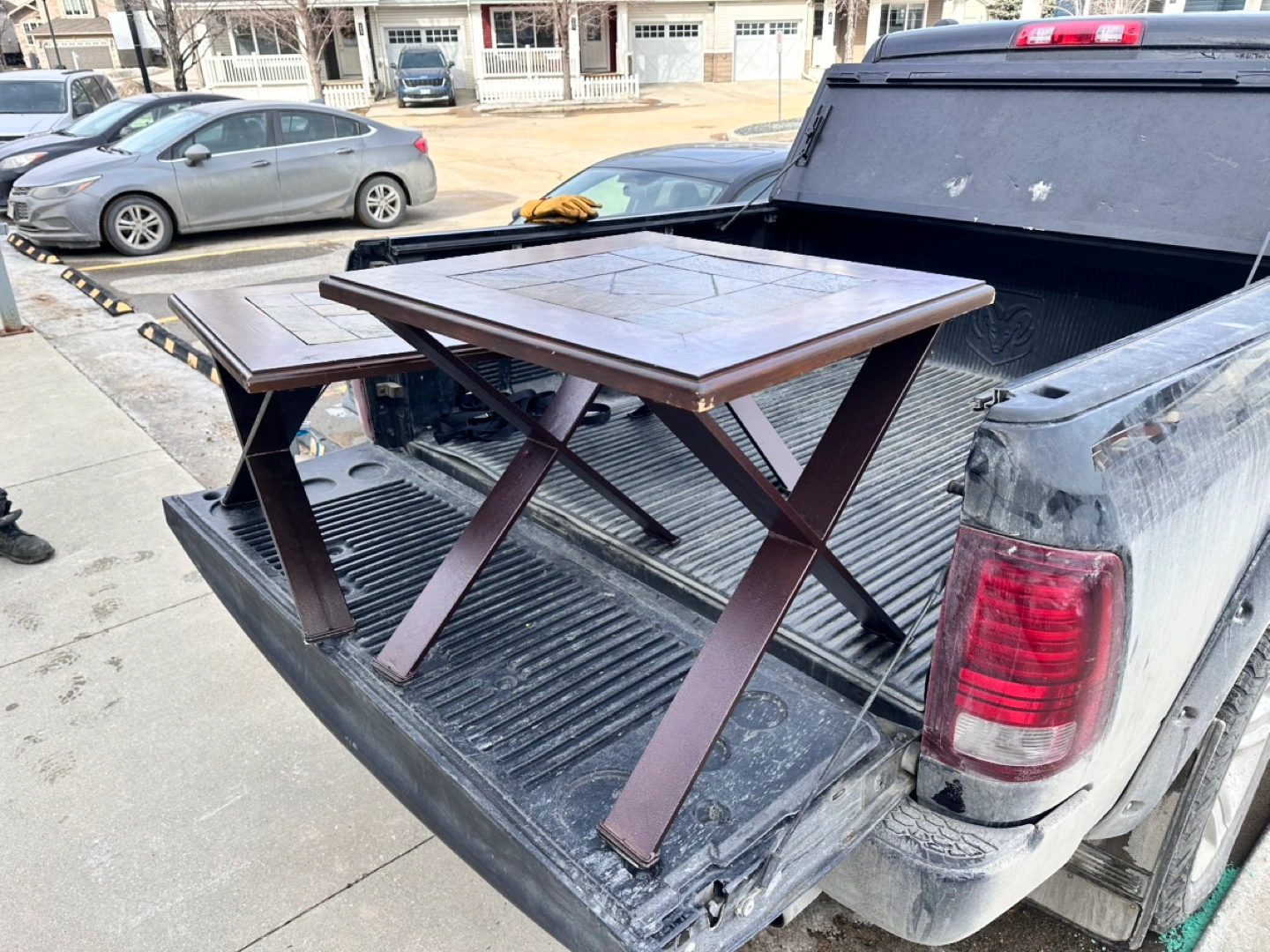 18• Dimensions: 56 x 56 x 62 cm • Solid wood tabletop with a sophisticated design • Strong metal legs for stability and durability • Ideal as a side table, nightstand, or accent piece • Compact yet stylish, perfect for small spaces Pickup only. Cash only.