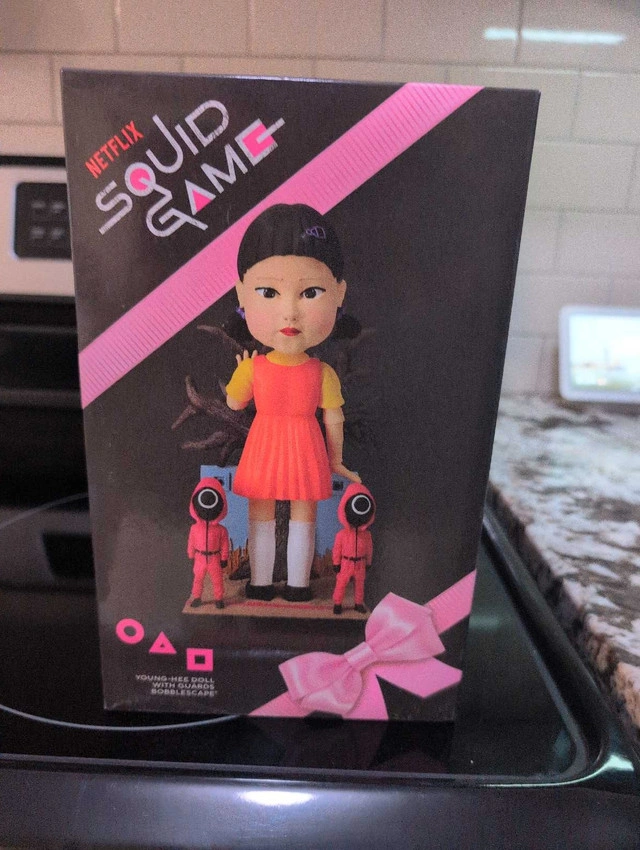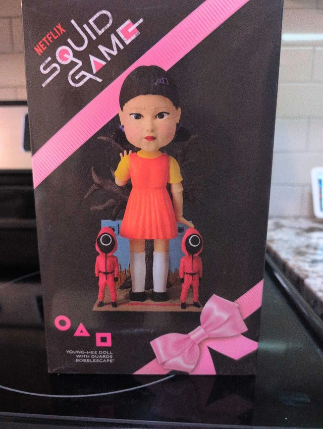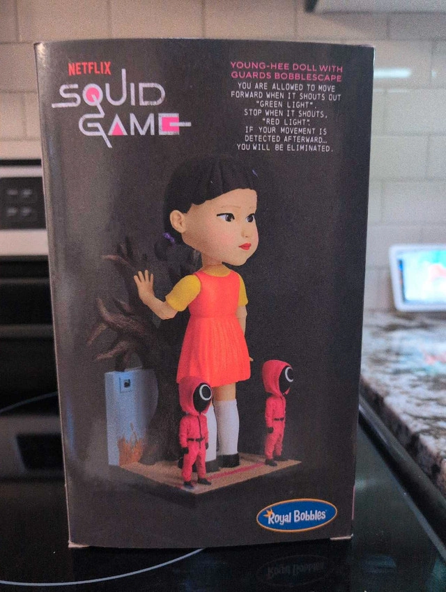 99I'm selling a Royal Bobbles Squid Game Young-Hee Doll with Guards Bobblescape. This collectible figurine is in brand new condition, still in its original packaging, ready to be displayed or added to your collection! It is from the Netflix series Squid Game. Additional details: * Brand: Royal Bobbles * Character: Young-Hee Doll and Guards * Series: Squid Game * Type: Bobblescape It's a fun and quirky item for any fan of the show! Don't miss out on owning a piece of the Squid Game phenomenon.
