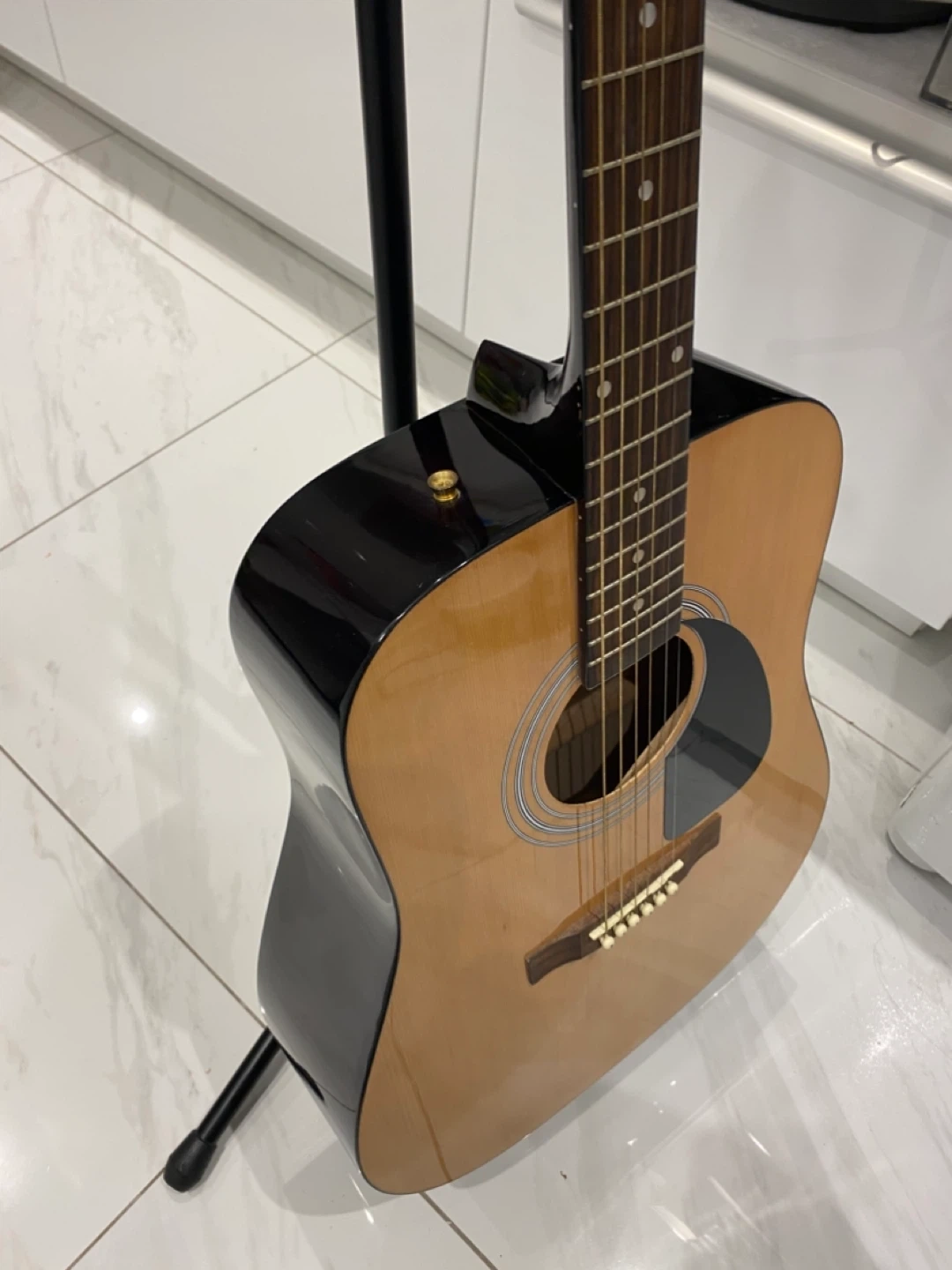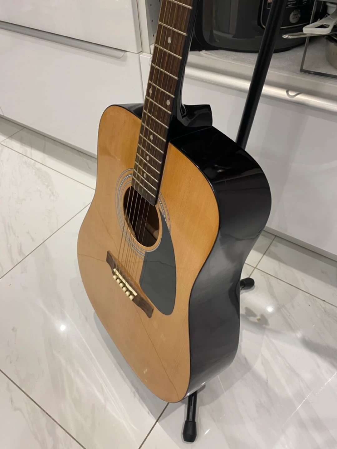 58Selling my Squier by Fender acoustic guitar Deluxe SA55 in excellent condition. No crack or damage. It has a beautiful sound and easy to play. Asking 180$ firm included guitar stand. Cash & pick up only. Thanks