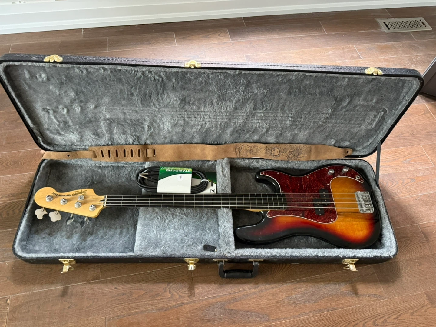 Selling a Squier Precision Bass guitar. It comes with the hard shell case and a strap. Great for anyone looking for a reliable bass!