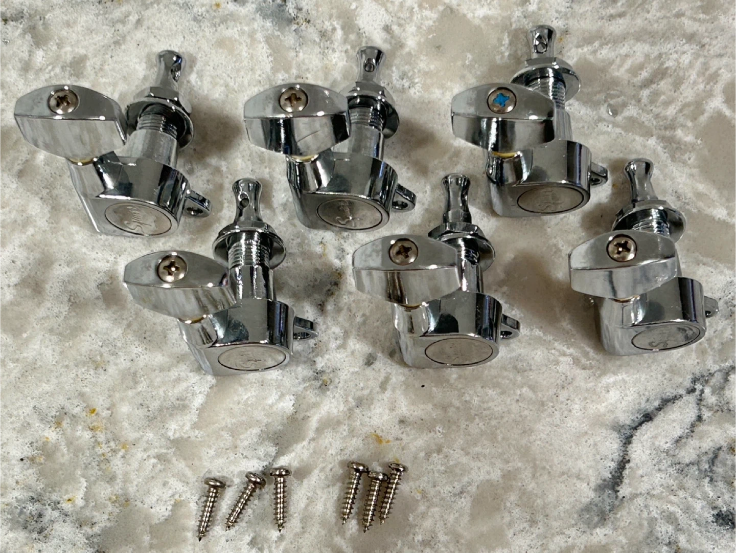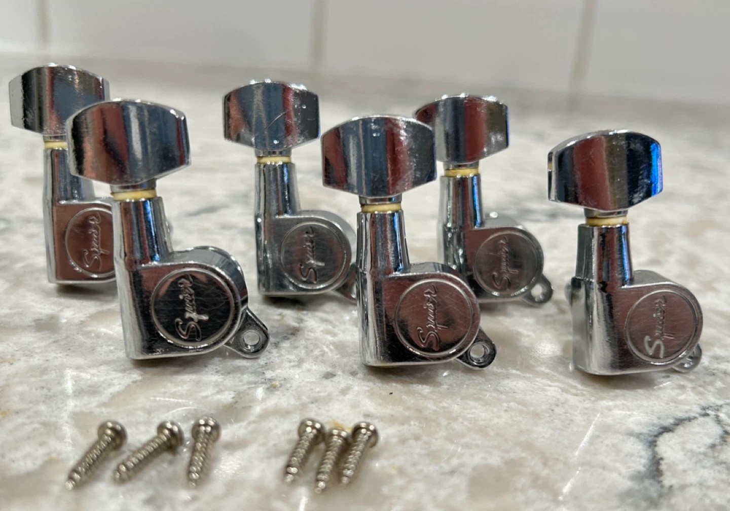 26Squier Guitar Tuners - Set of 6 Excellent condition Come with the mounting screws. Perfect for your next guitar project! See other listings for more guitar parts and accessories