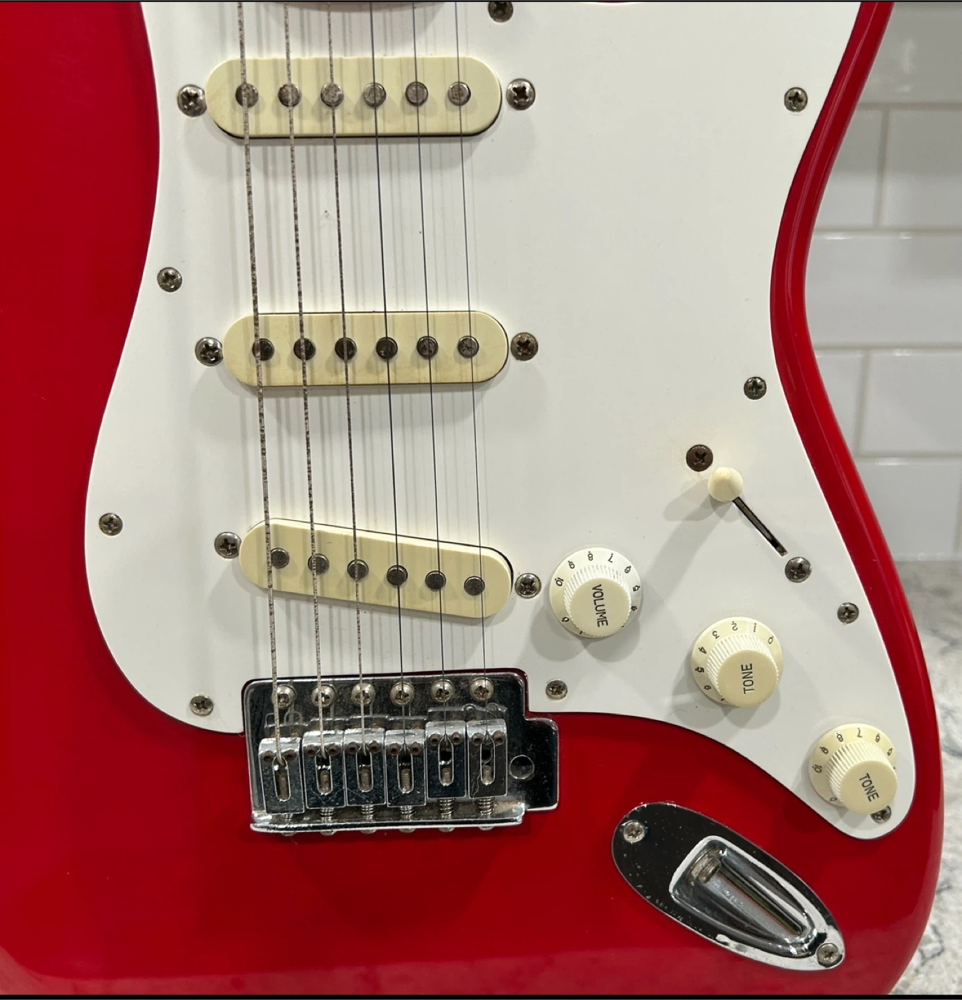 Squier II Stratocaster Electric Guitar - Red Excellent condition. Will probably need some new strings as they’re starting to show some rust but otherwise in great shape and ready for a new home. Perfect for beginners or experienced players looking for a reliable instrument! See other listings for more guitar parts and accessories