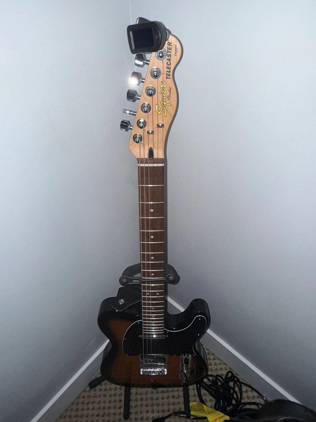 Selling a Squier Telecaster. It's in good condition and ready for a new home! Perfect for beginners or experienced players alike Including straps, picks and Bag