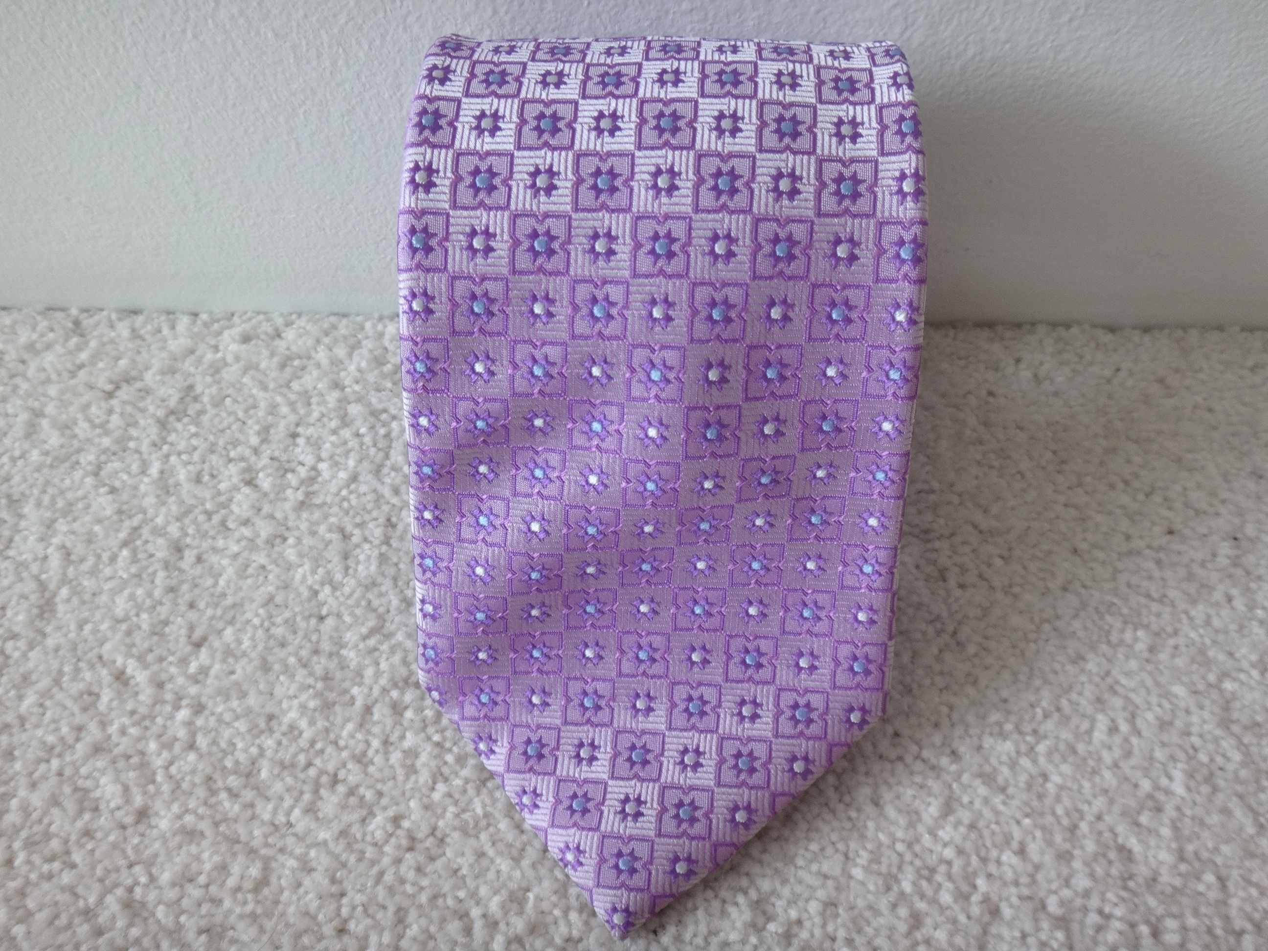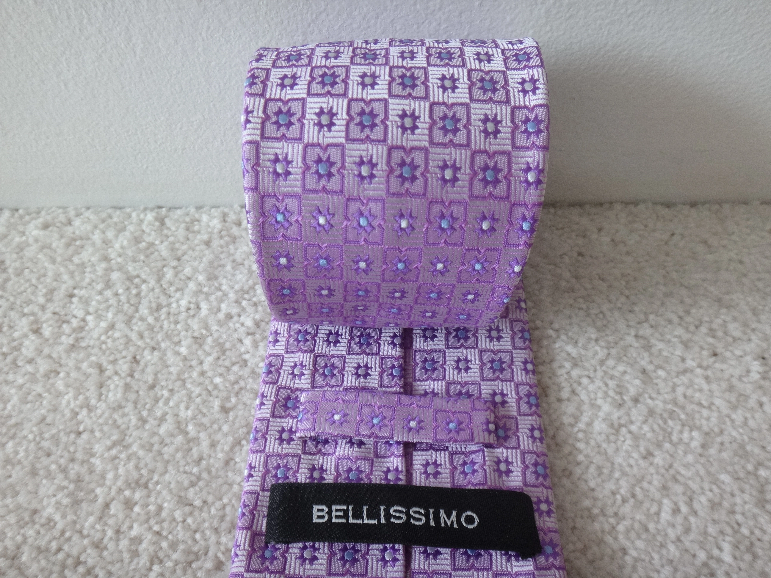 NEW! BELLISSIMO pink and light blue pattern silk tie.