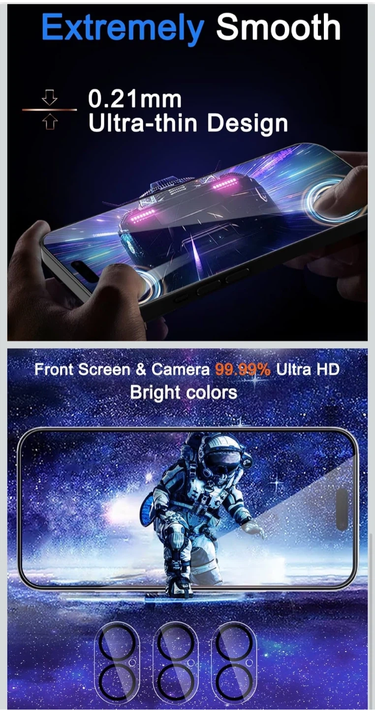 This 6-pack of Ferilinsgo screen protectors offers high quality and ultra-thin design for your iPhone 16 Plus. It features a slim profile with oleophobic coating and 9H hardness for scratch resistance. The kit includes an auto-dusting installation tool for bubble-free application.
