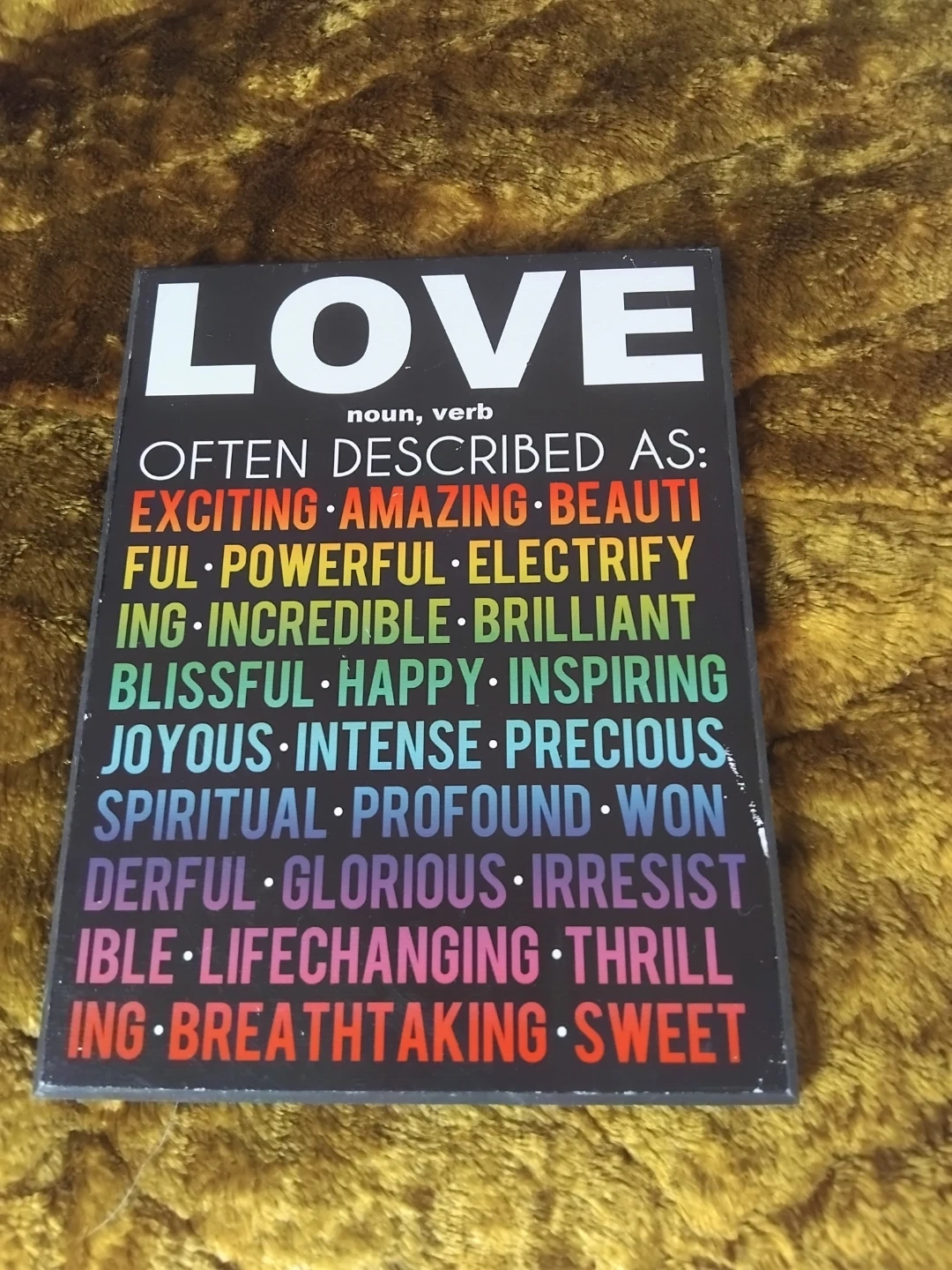 This wall art features the word 'LOVE' with many positive adjectives describing it. It's a colourful piece perfect for adding a cheerful touch to any room. Wall art measures 8 inches by 10 inches.