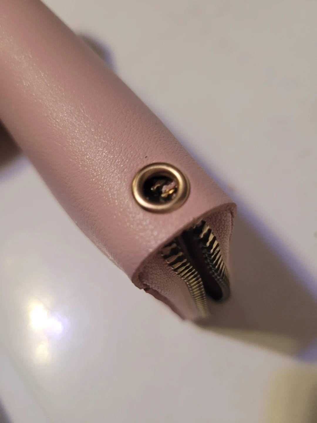 This Forever Young wallet features a stylish colorblock design with pink and brown tones. It has multiple card slots and a zippered coin pocket. It comes with a cute bunny-shaped tassel charm!