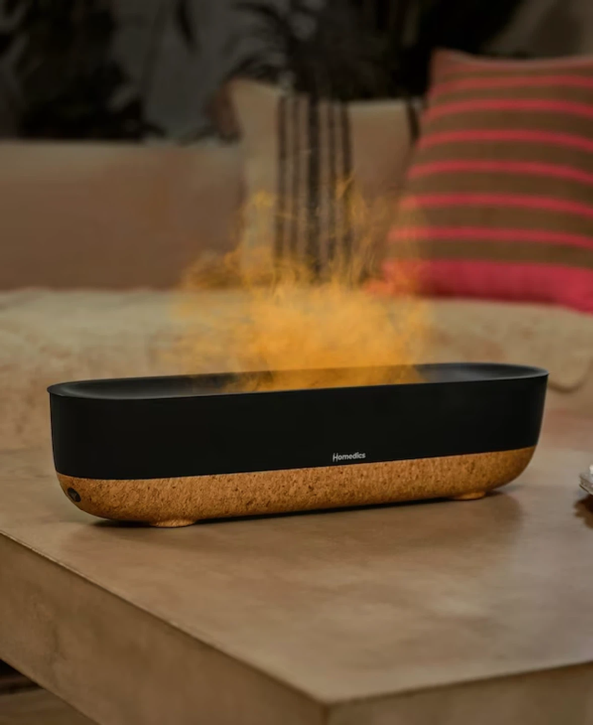 Visible flame-effect cool mist and low-profile décor styling, the Homedics® Fireside ultrasonic cool mist humidifier disperses a realistic flame effect. The .26-gallon tank features up to 12 hours runtime with automatic shutoff when out of water, plus 3 adjustable mist and light settings. Clean Tank Technology helps protect the tank from mold and mildew while the adjustable flame adds cozy ambiance to any space.