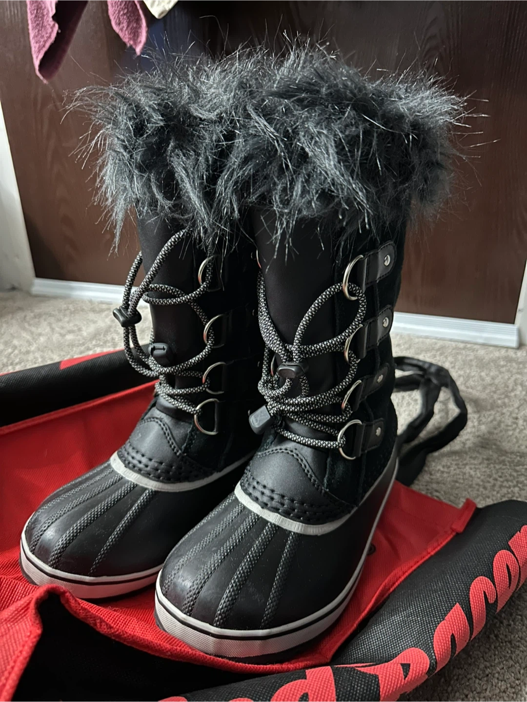 Selling a pair of Sorel Tofino II winter boots in black! They are a size 2 kids, fits women size 5. These boots are perfect for keeping your feet warm and dry during the winter months. Only used only for 3 or 4 times, bought new ones.