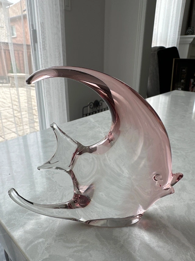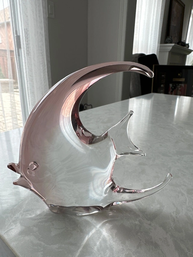 Murano glass angel fish, often attributed to the Italian glassmaker Vincenzo Nason & Cie (V. Nason & C.). Hand-blown glass featuring a distinctive, often sleek or curved, stylized design. Used - Like new. Vintage, Antiques.