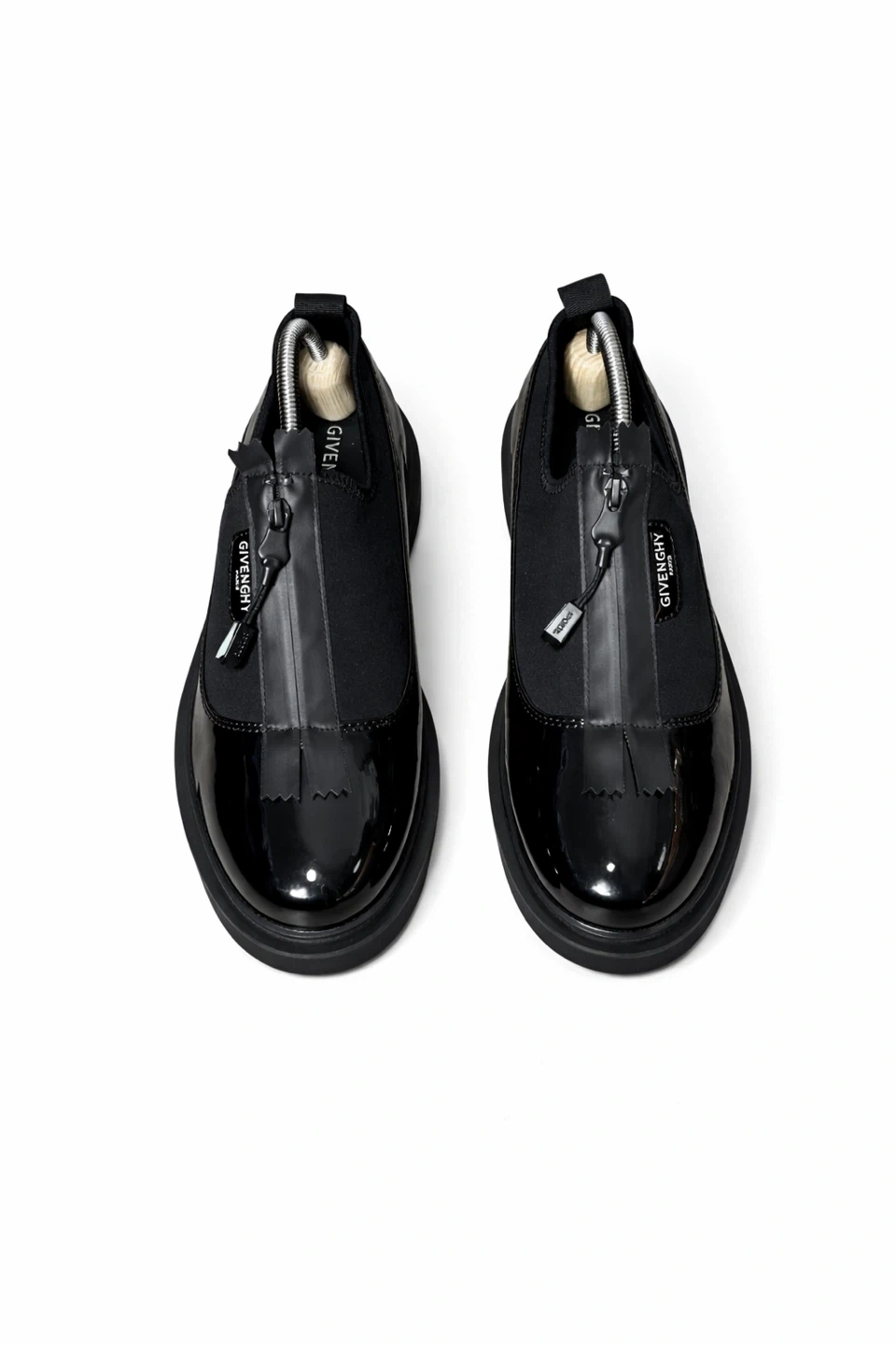 Givenchy Black Patent Leather and Fabric Zip Up Loafers