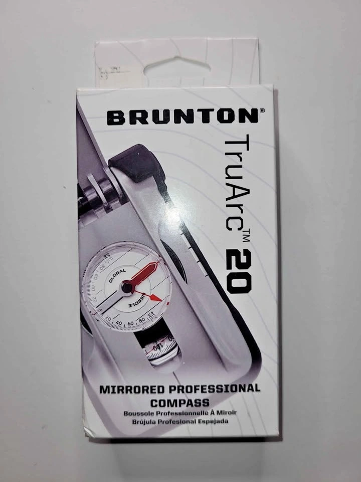 Brand new Brunton TruArc 20 Mirrored Professional Compass. Has TruArc global needle, tool-free declination adjustment, and dual inclinometer function. Weighs 1.7 ounces and measures 5.2 x 2.8 x 0.5 inches. Made in the USA.