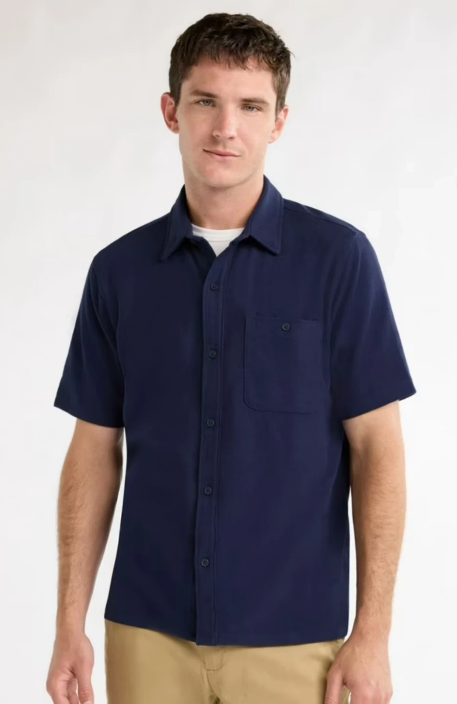 This is a Free Assembly men's short sleeve button-up shirt in navy blue. It's a size medium. The shirt features a single chest pocket and a collared neckline, great for work school uniform etc. Cash only pickup in Queens or Hicksville. I have multiple, ask about bulk