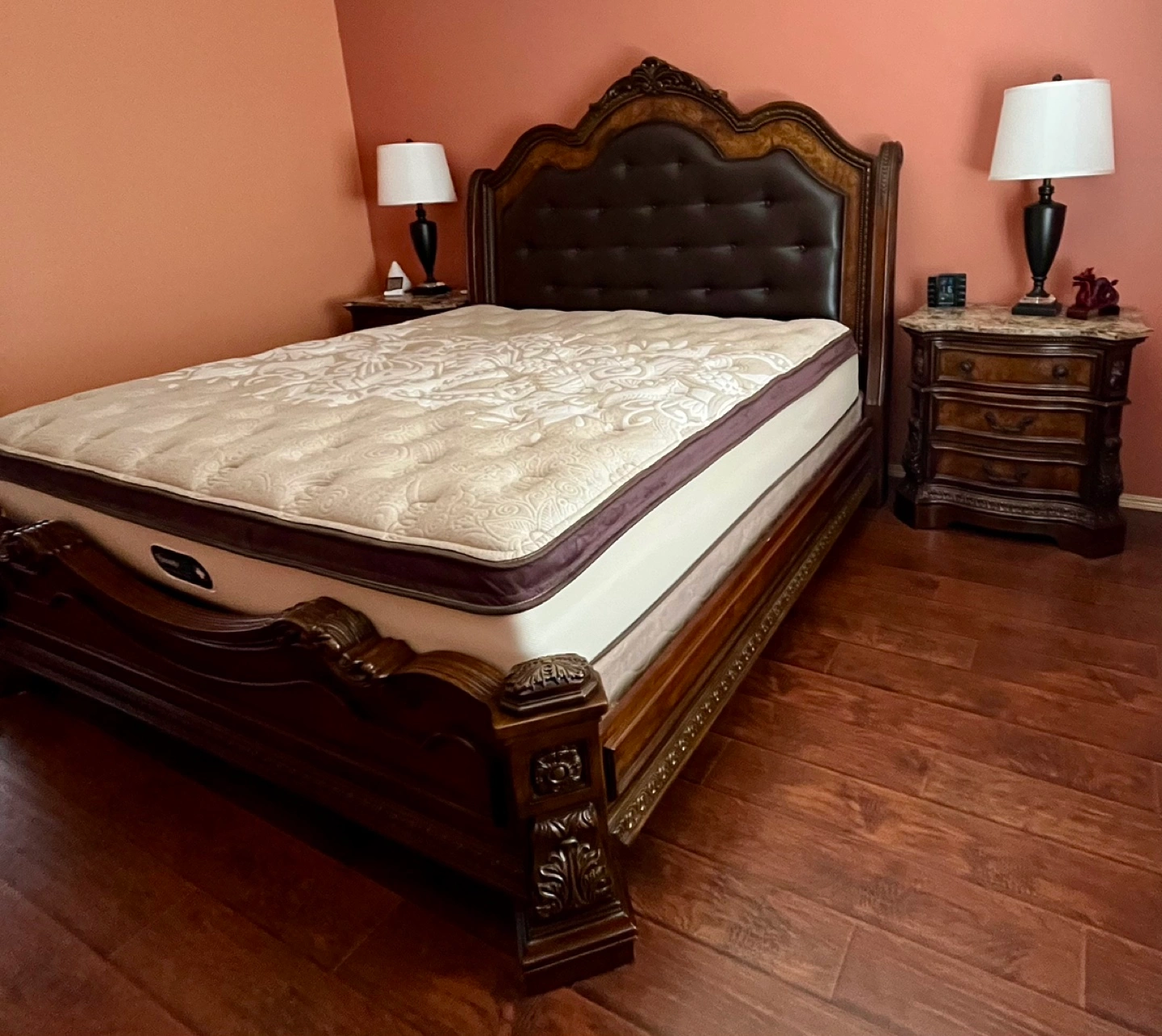 Elevate your bedroom with this stunning, luxury bedroom set, perfect for adding a touch of elegance and sophistication to your space. This gently used set is in excellent condition and blends classic design with a hint of royal flair.