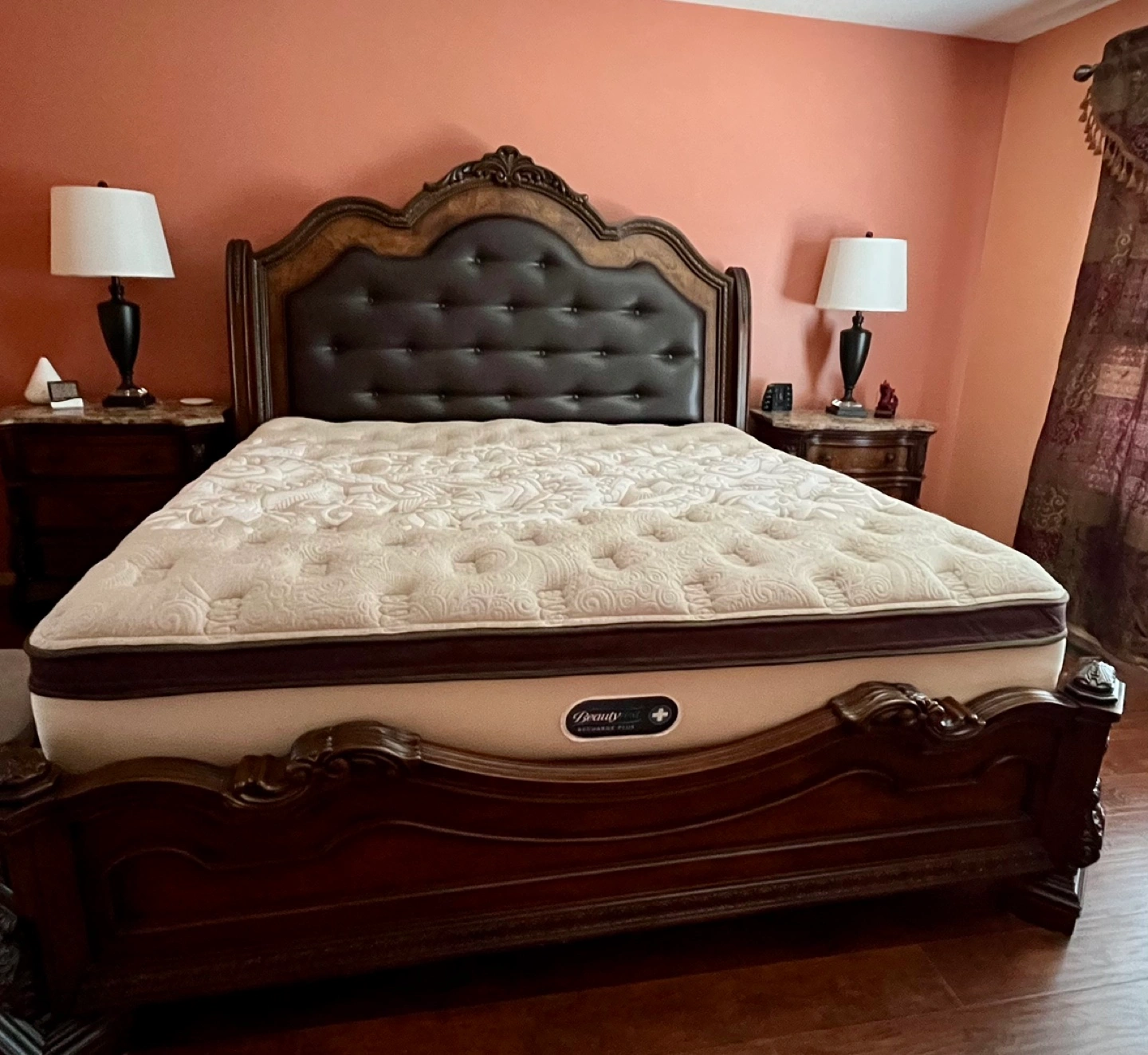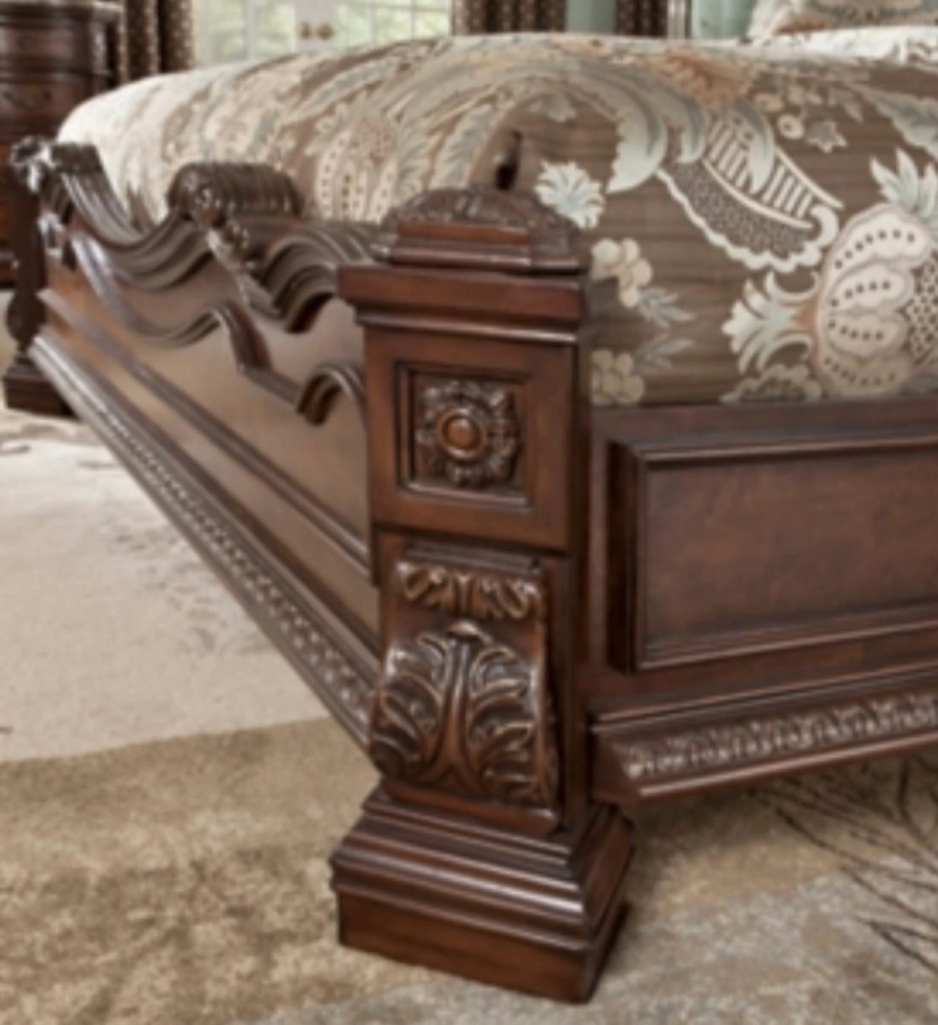 - Beautiful king size bed with intricate detailing