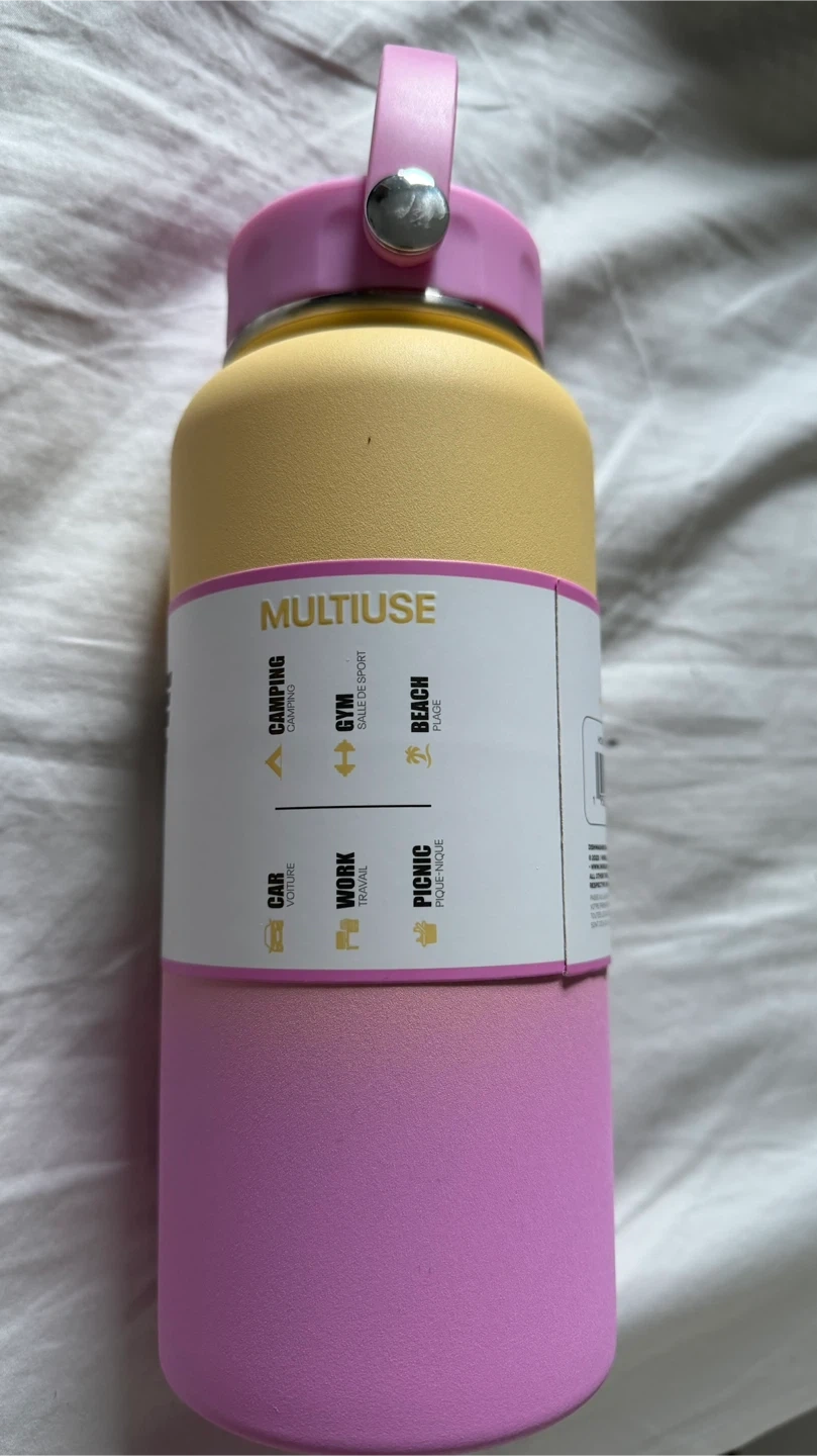 Never used Hydroclear bottle is made of stainless steel with a double wall construction. It's BPA free and features a TempShield. It's useful for car, work, gym, camping, and beach outings.
