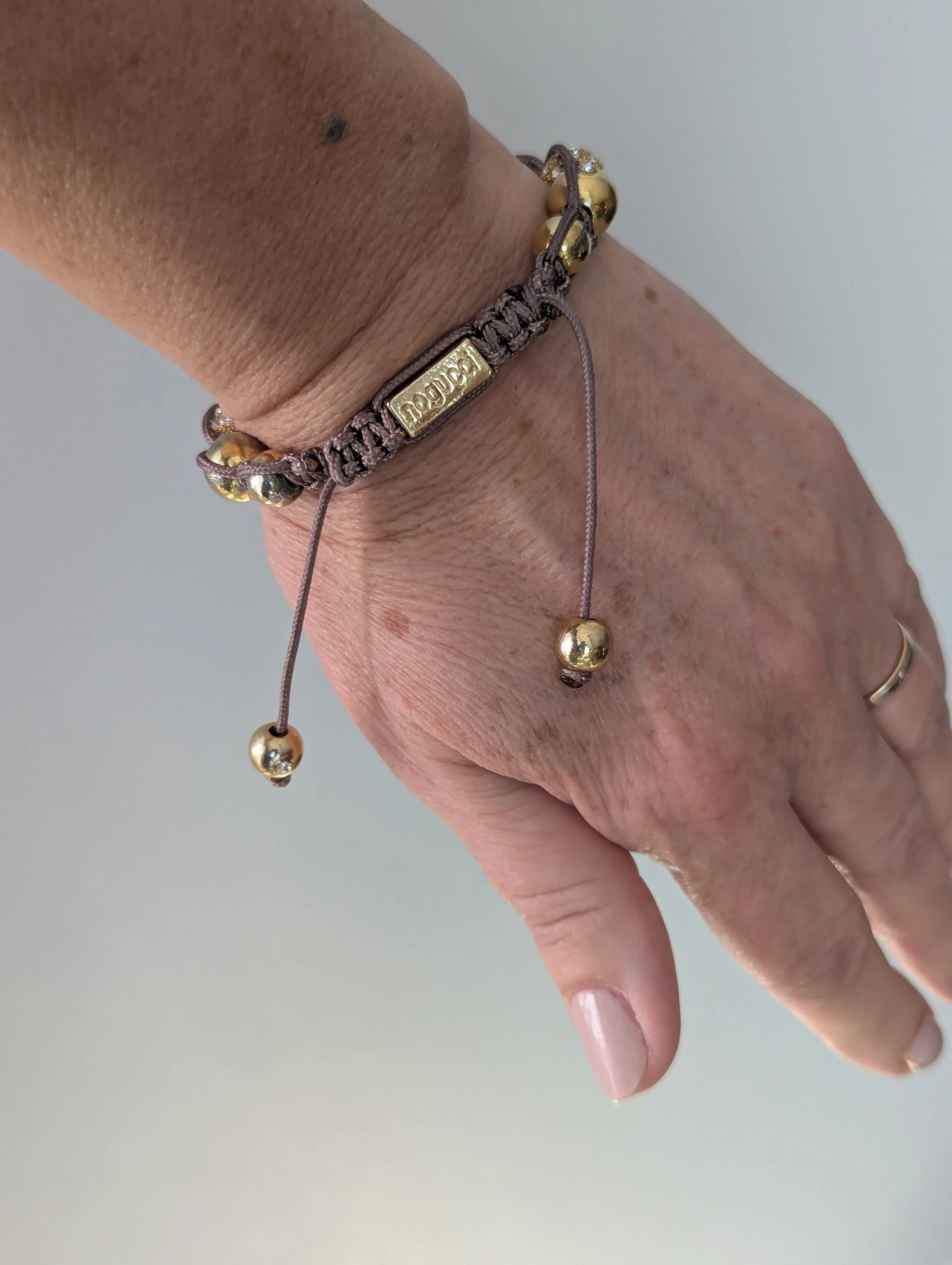 Nogucci Bracelet - taupe Cord, Gold Beads & Crystals