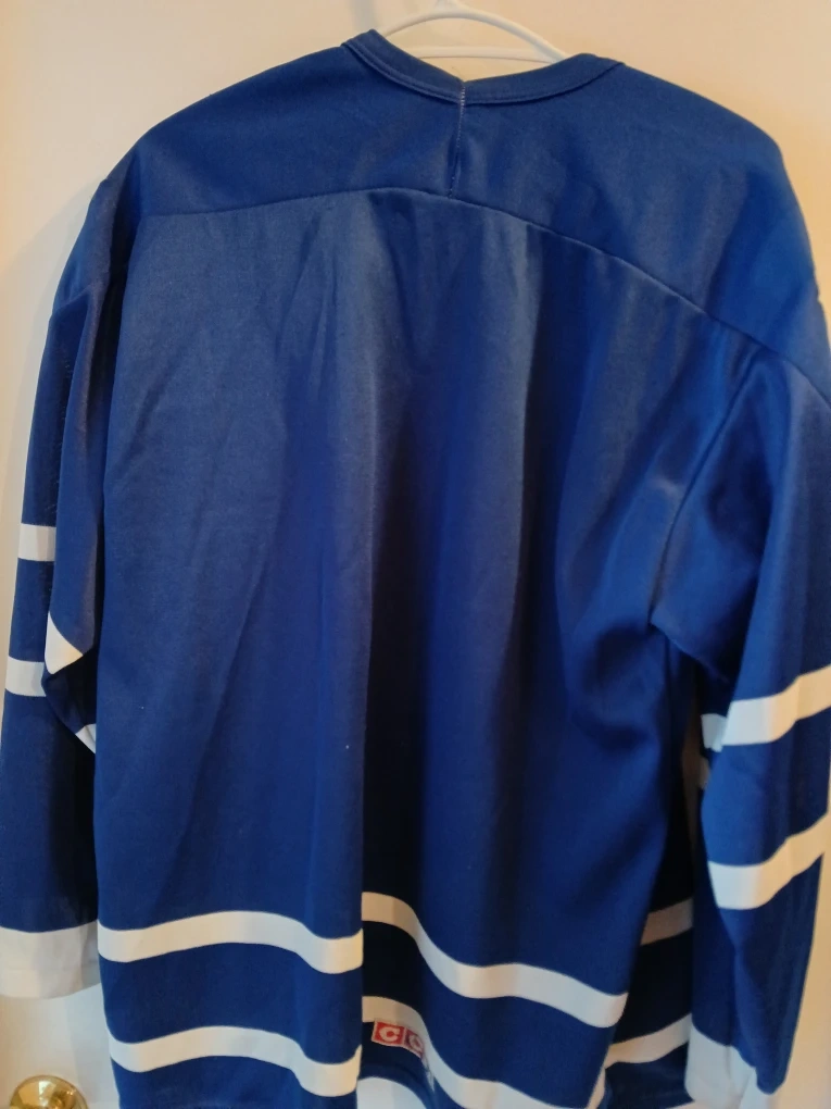 Show your team spirit with this classic Toronto Maple Leafs LARGE CCM hockey jersey. It features the iconic blue and white design with the team's logo proudly displayed. Made from durable material, it's ready for game day or casual wear.Gives you the opportunity to choose the name and number of your favorite player on Toronto's hockey team.