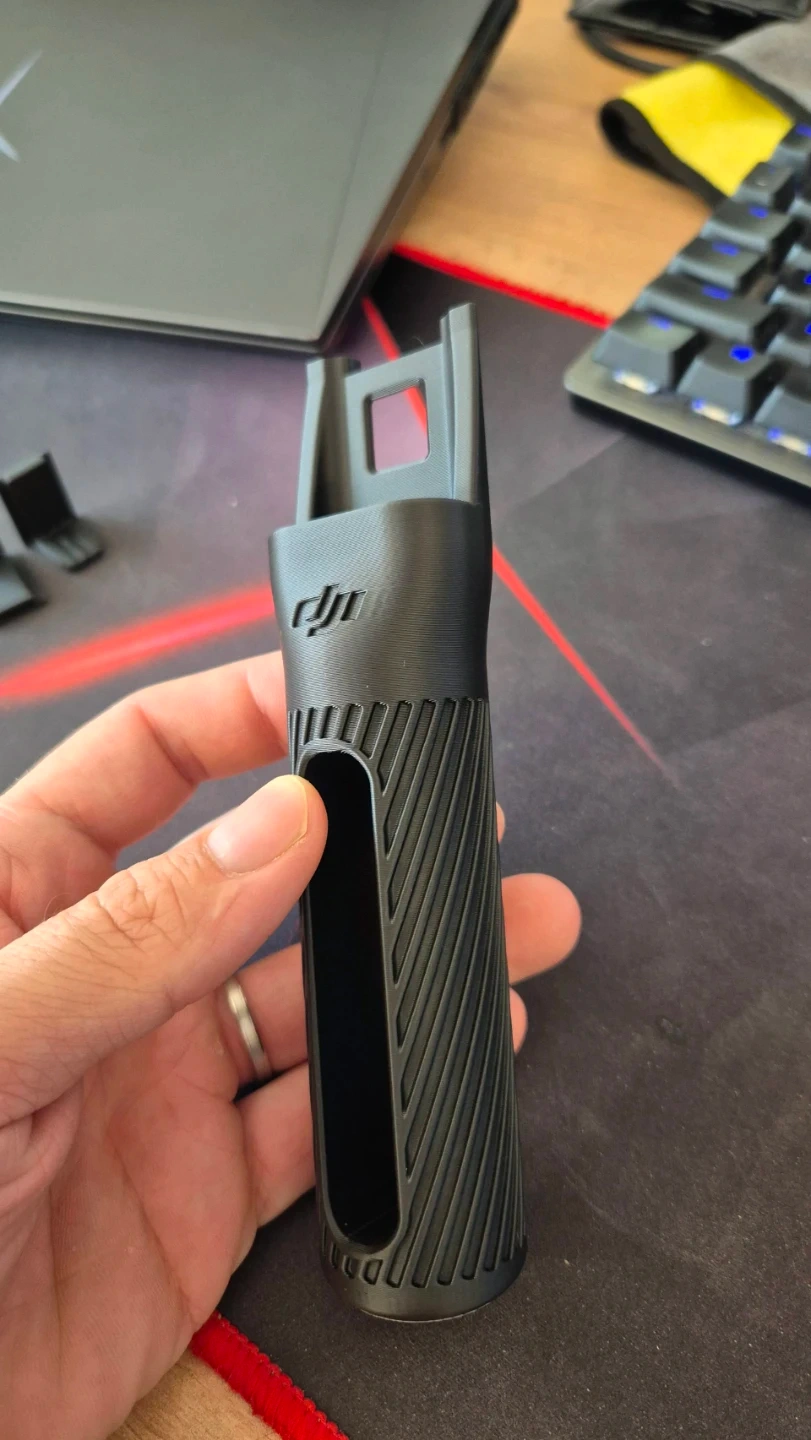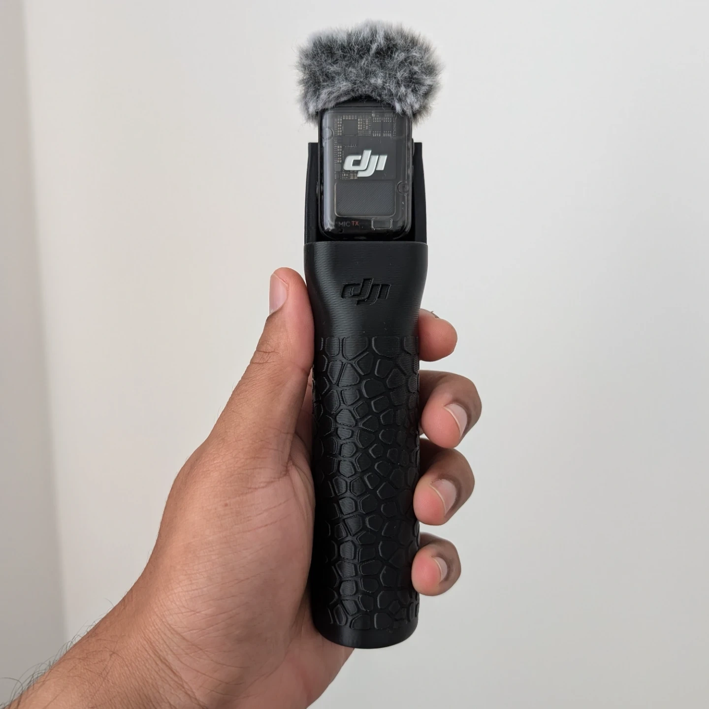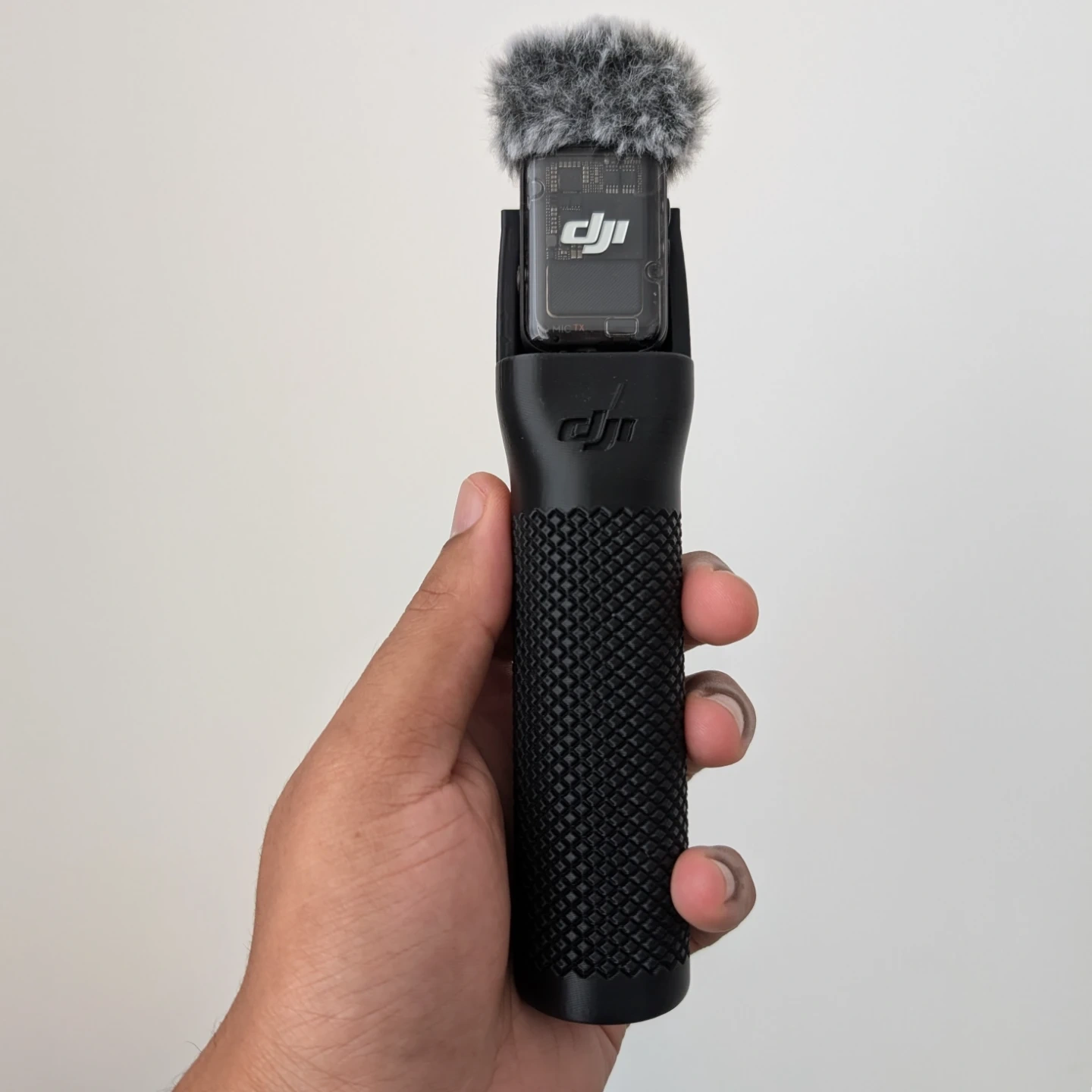 This is a handle grip accessory for DJI microphones. It features a textured grip for better handling and a built-in mount for your microphone transmitter.