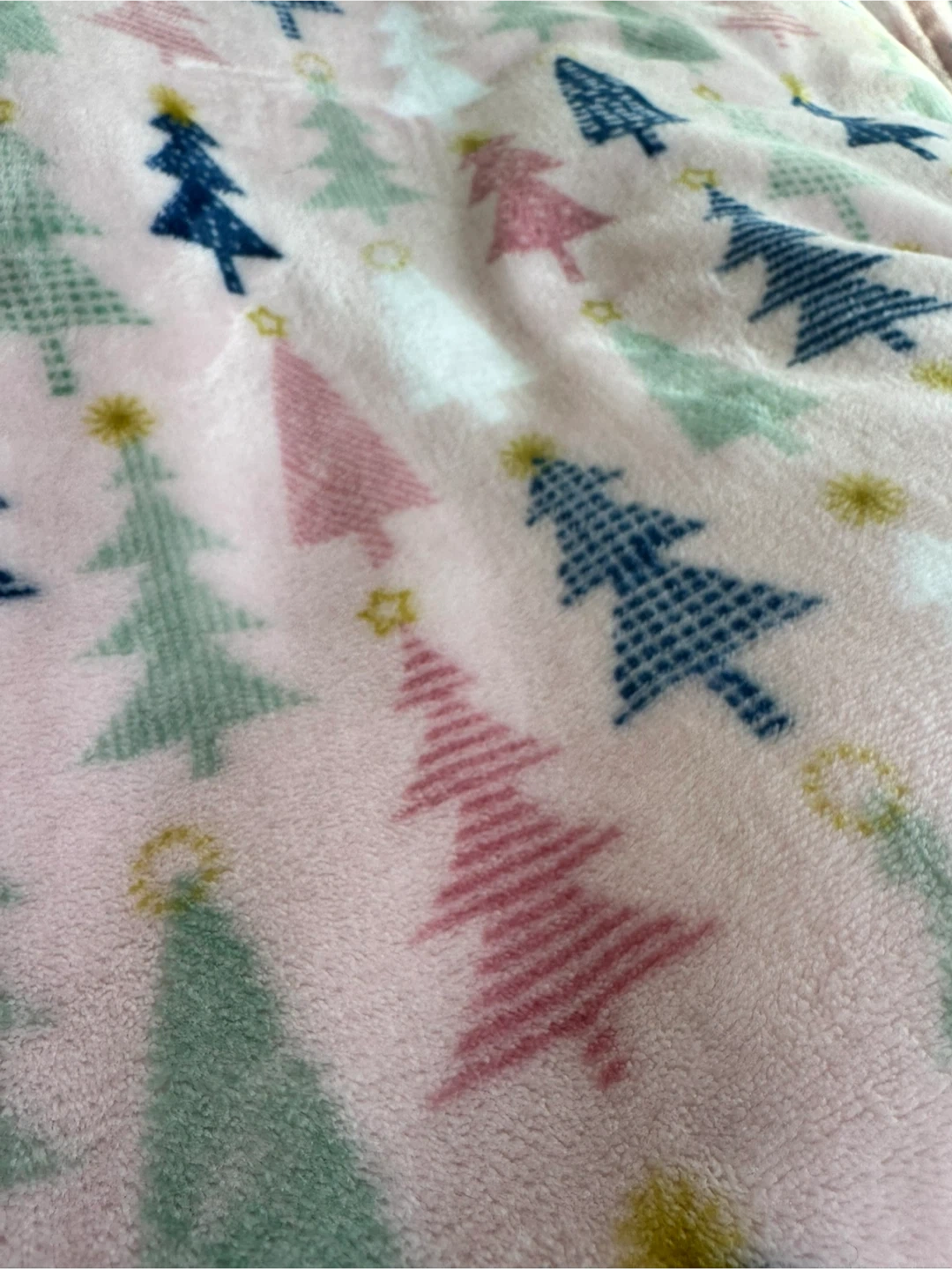 Pair of soft and cozy fleece throw blankets featuring a festive Christmas tree pattern.