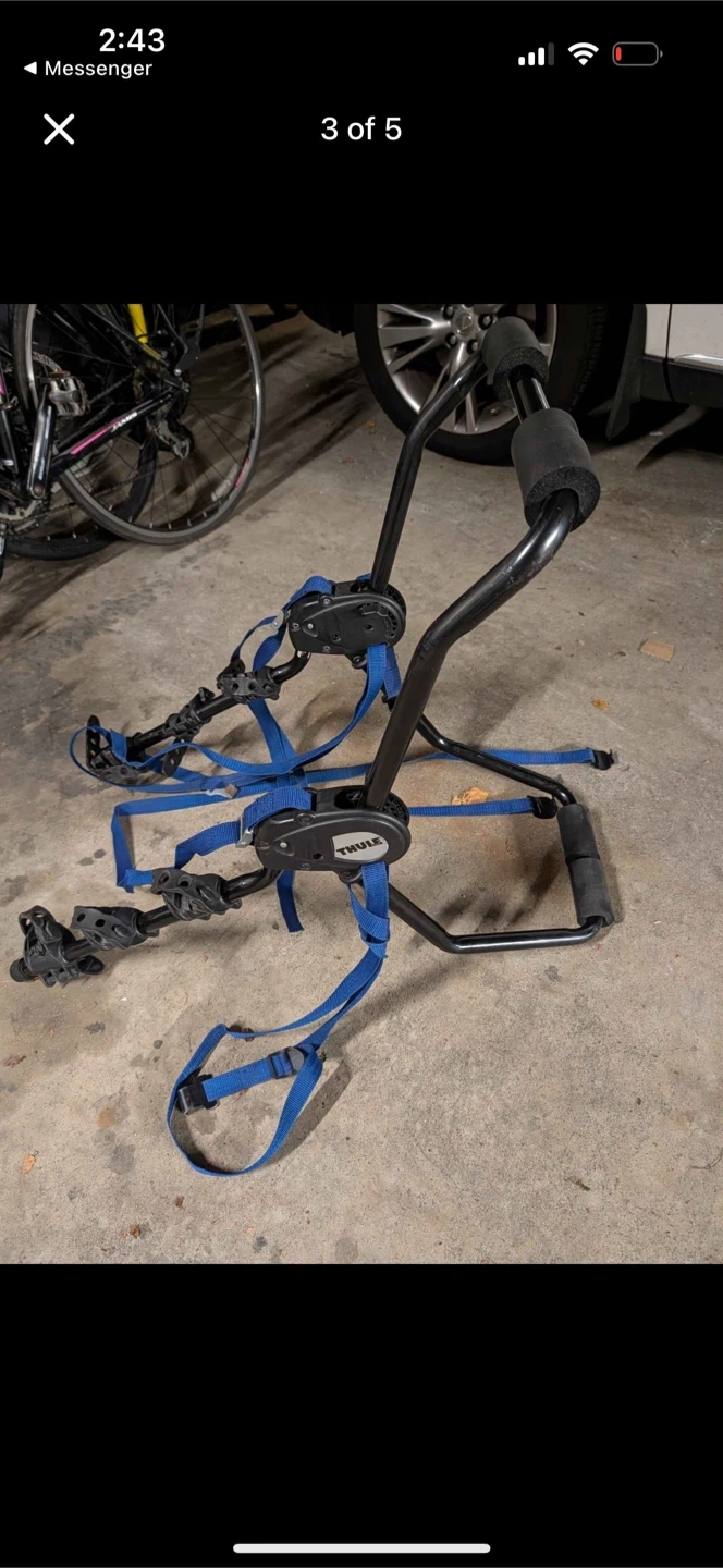 Buy & SellThule Bike RackThule Bike Rack$40This is a Thule trunk-mounted bike rack. It's black with blue straps. It secures bikes for transport.WHERE TO MEETFalse creekView MapSELLERverifiedJosephFairview650 reviews0 chats·3 favorites·17 viewsSEND CHAT TO SELLERHi Joseph! I’m interested in your listing.Hi Joseph! I’m interested in your listing.Get the Karrot app to chatSign In to chat