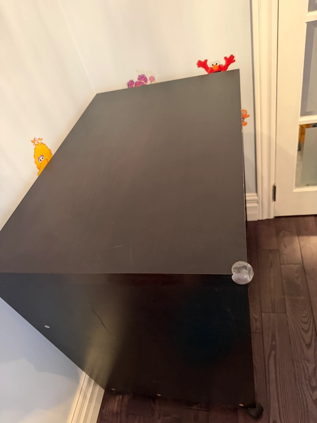 Dark brown kids computer desk. It has a pull-out keyboard tray. This desk is perfect for a home office setup.