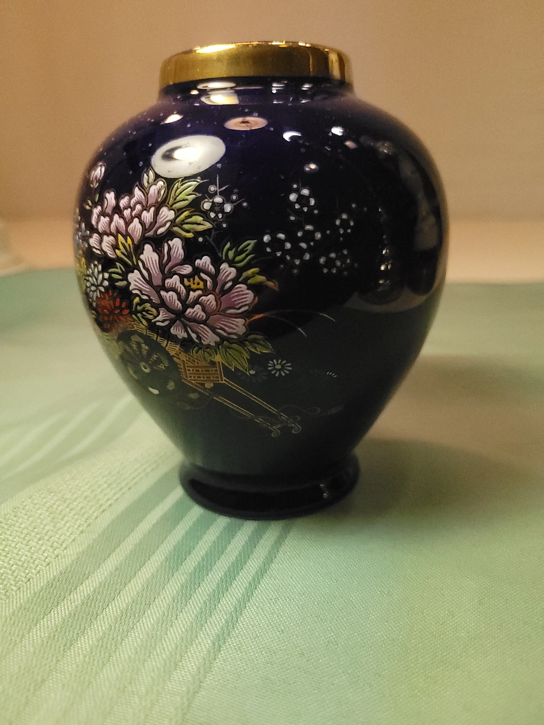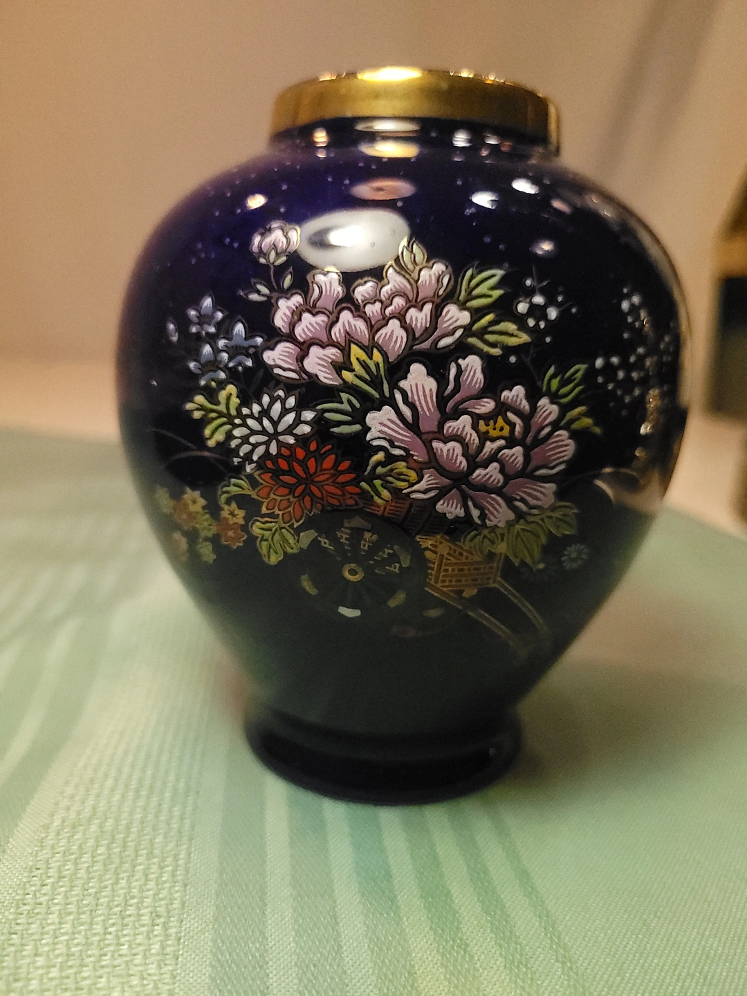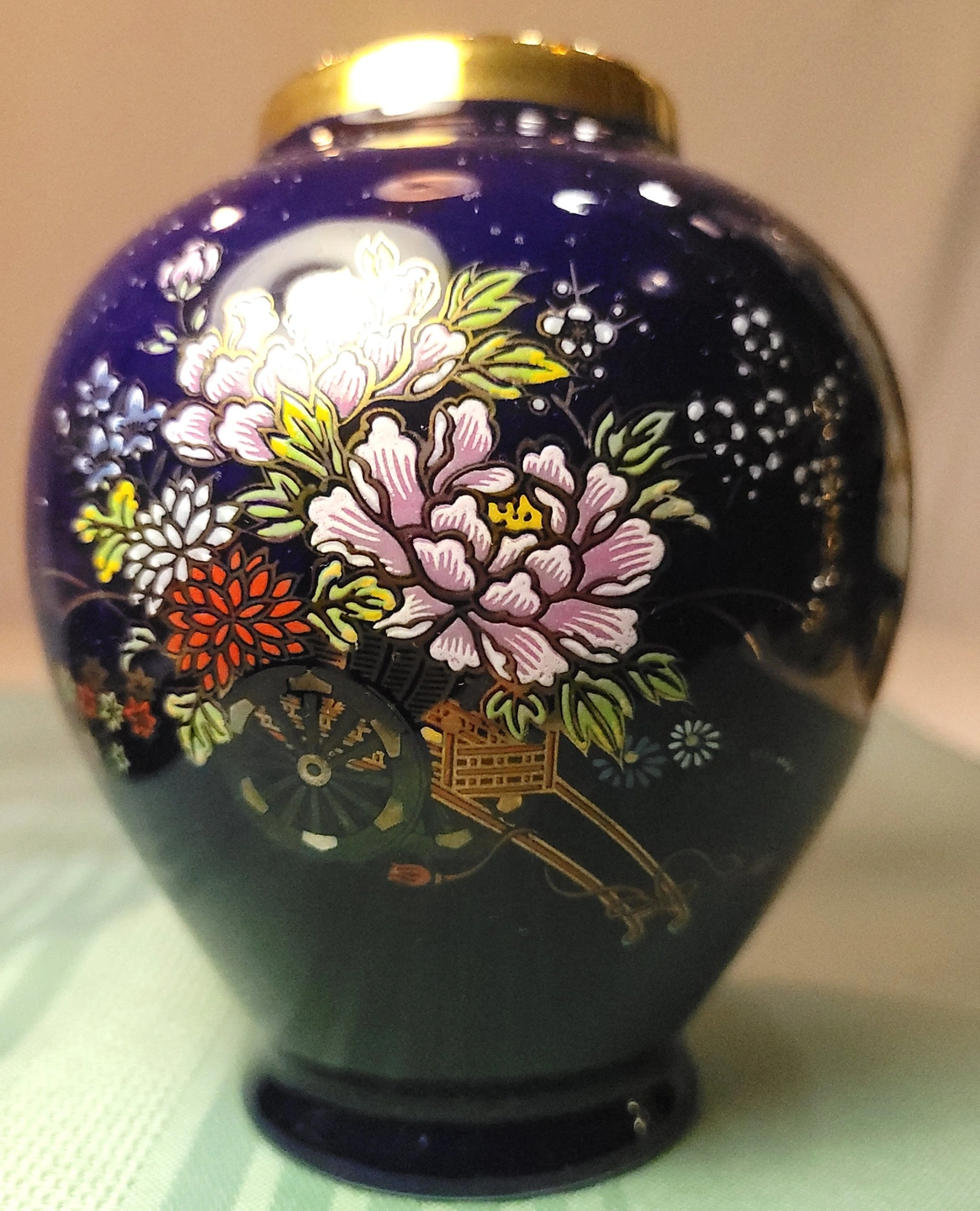 1960s Japanese Cobalt Blue Porcelain Vase - Flower Cart Vintage