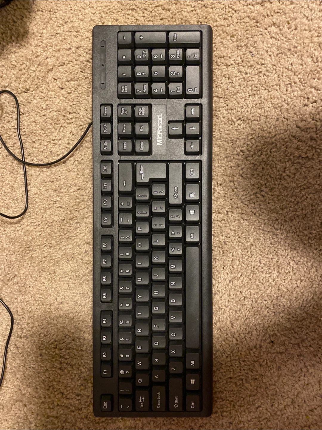 This is a Microcad wired keyboard. It features a full numeric keypad and standard QWERTY layout. Great for general computer use. All buttons function, selling because I got a new fancy keyboard.