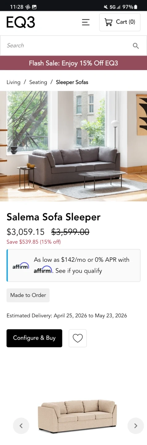 EQ3 Salema Sofa Sleeper(Non Smoking)