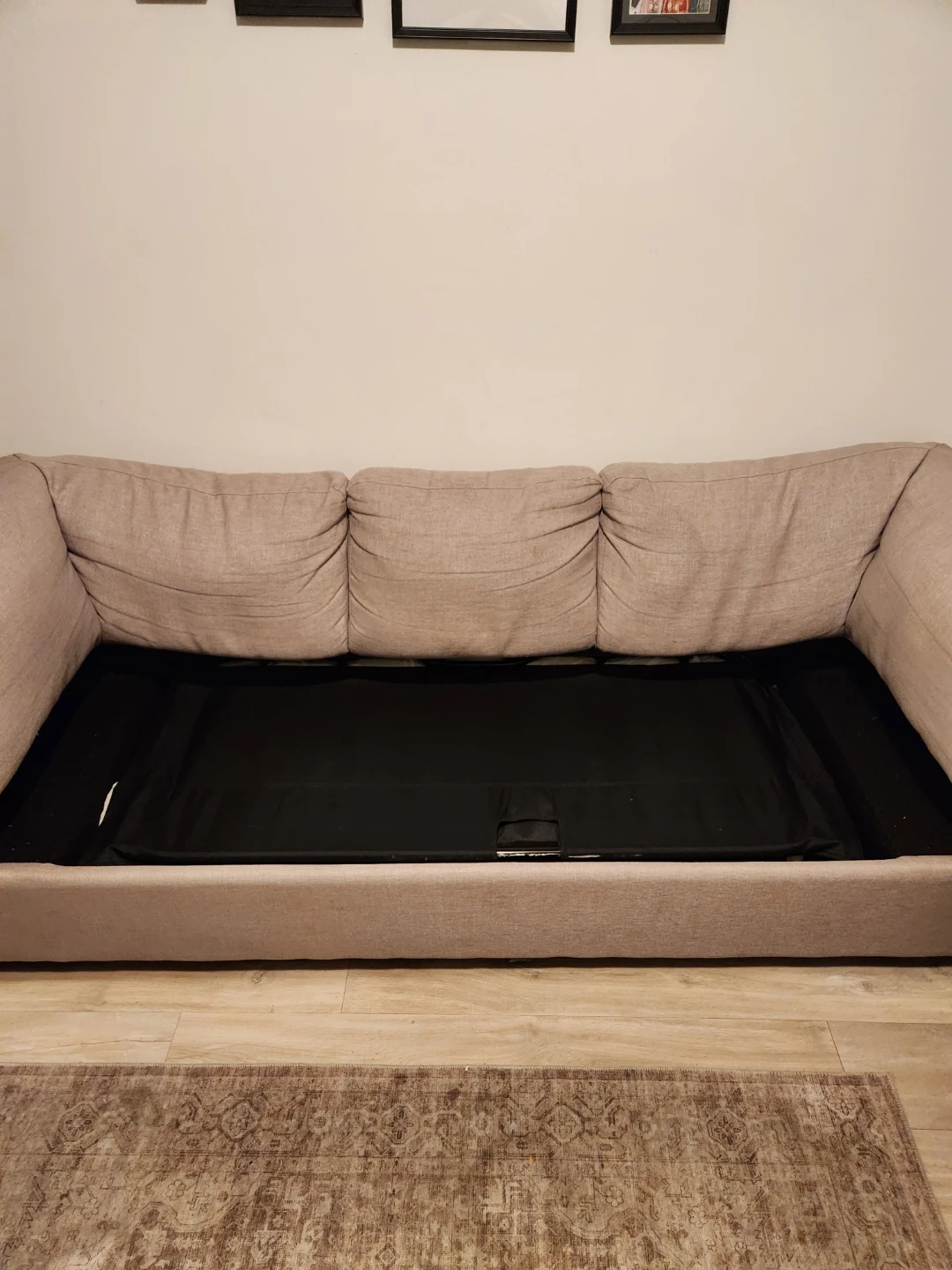 This EQ3 Salema Sofa Sleeper offers comfortable seating and a convenient pull-out bed. It's upholstered in a neutral beige fabric. Easy to convert from sofa to bed for overnight guests!