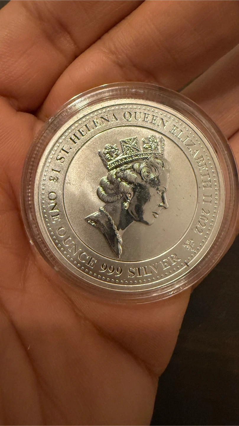 93Selling a St. Helena Queen Elizabeth II 2022 silver coin. It's in great condition and comes in a protective case. The coin is made of one ounce of .999 silver and features a detailed design of Queen Elizabeth II on one side and a Pegasus on the other Firm price