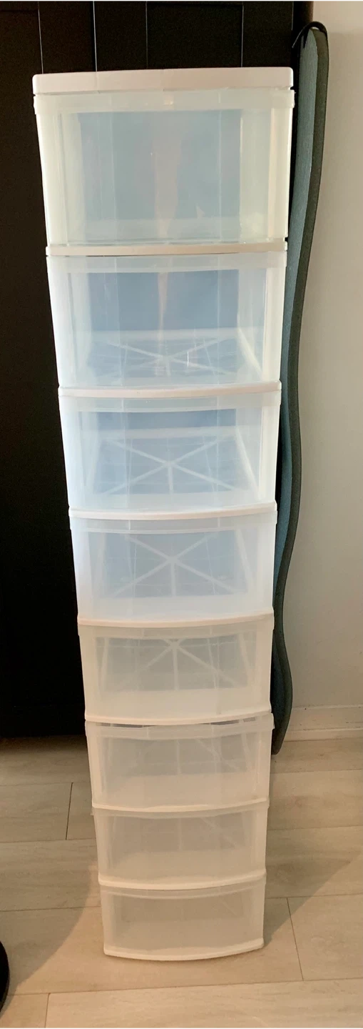Selling a handy 8-drawer storage tower! It's in great shape and perfect for organizing your space. The drawers are clear, so you can easily see what's inside. Great for a closet, bedroom, or office space!