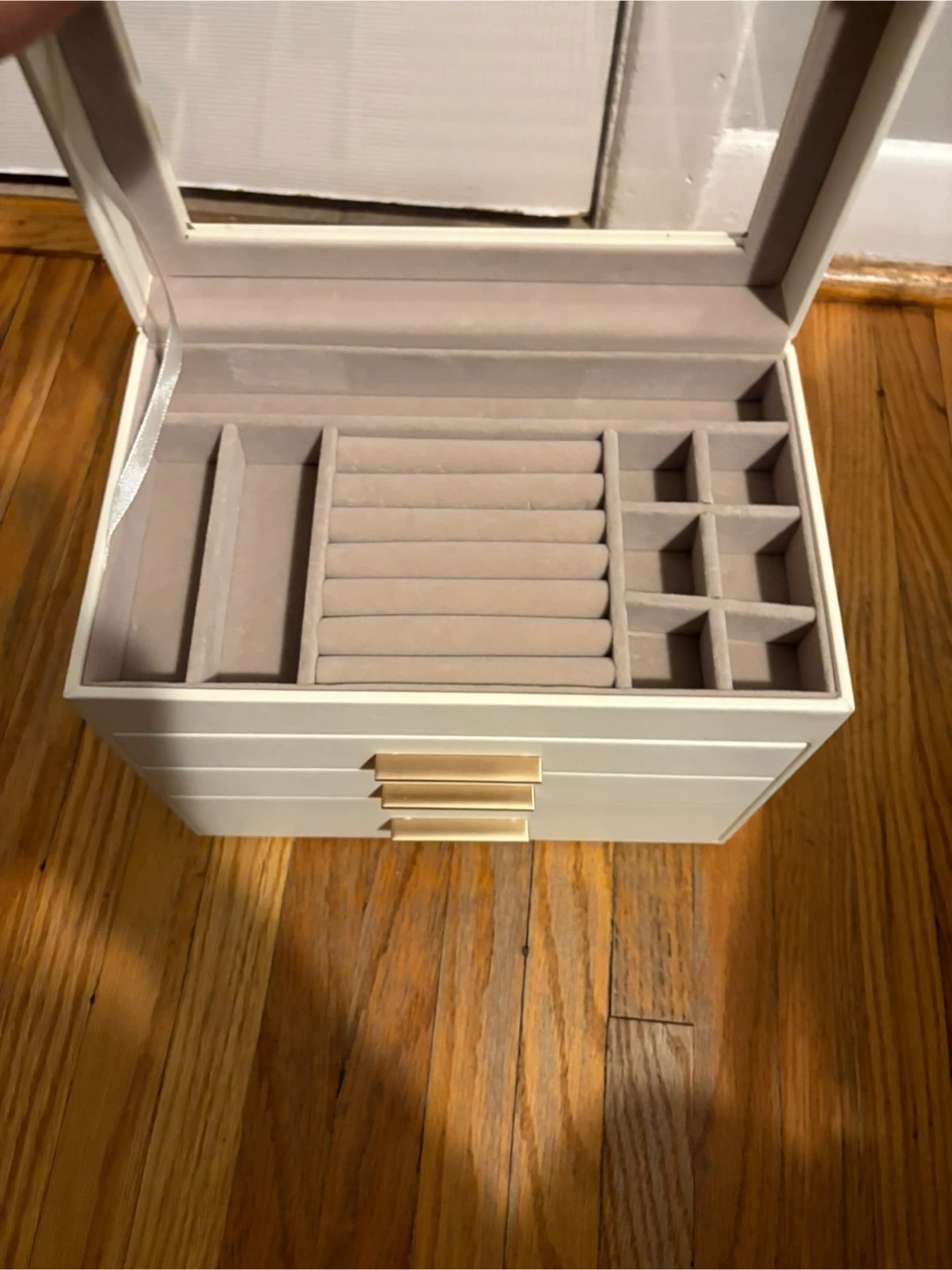 0Selling a stackable layered jewelry box! It's in great condition and perfect for organizing your rings, necklaces, and earrings. The box features multiple layers and compartments to keep your jewelry safe and tidy. A stylish and functional addition to any dresser or vanity!