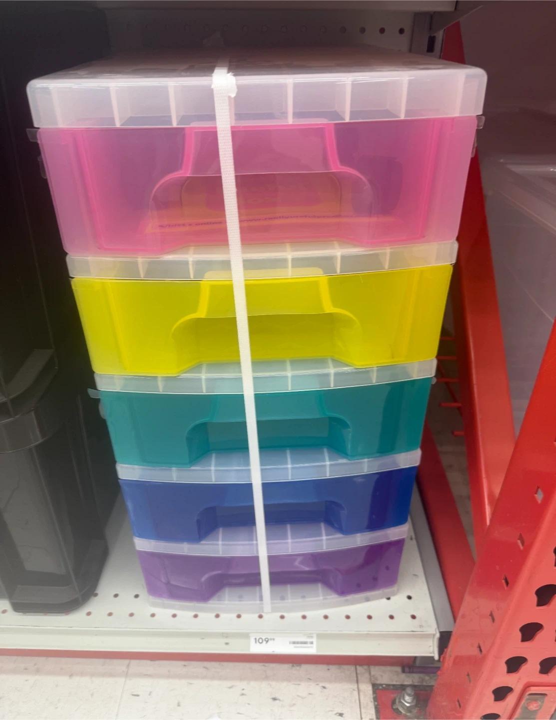 65Selling a set of stackable storage bins. These are great for organizing your space! The set includes multiple colours: pink, yellow, teal, blue, and purple. Perfect for tidying up any room in your home