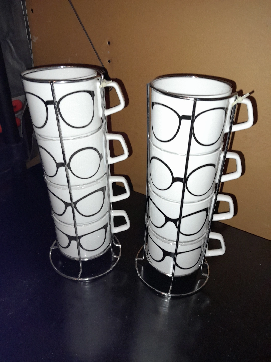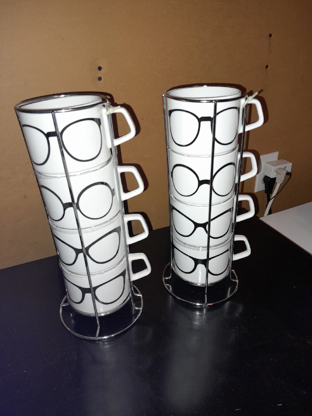 10Here's a set of stacking glasses, each with a cute eyeglasses design! They come with a handy rack for easy storage and display, perfect for adding a touch of whimsy to your kitchen or dining area