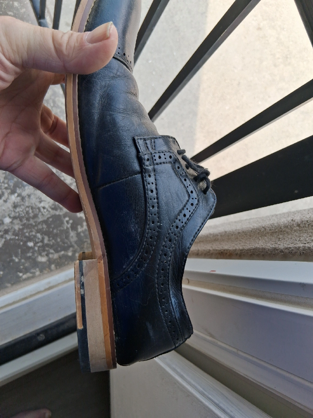 Selling a pair of Stacy Adams dress shoes. They are black leather and in used condition. Please see photos for wear and tear.