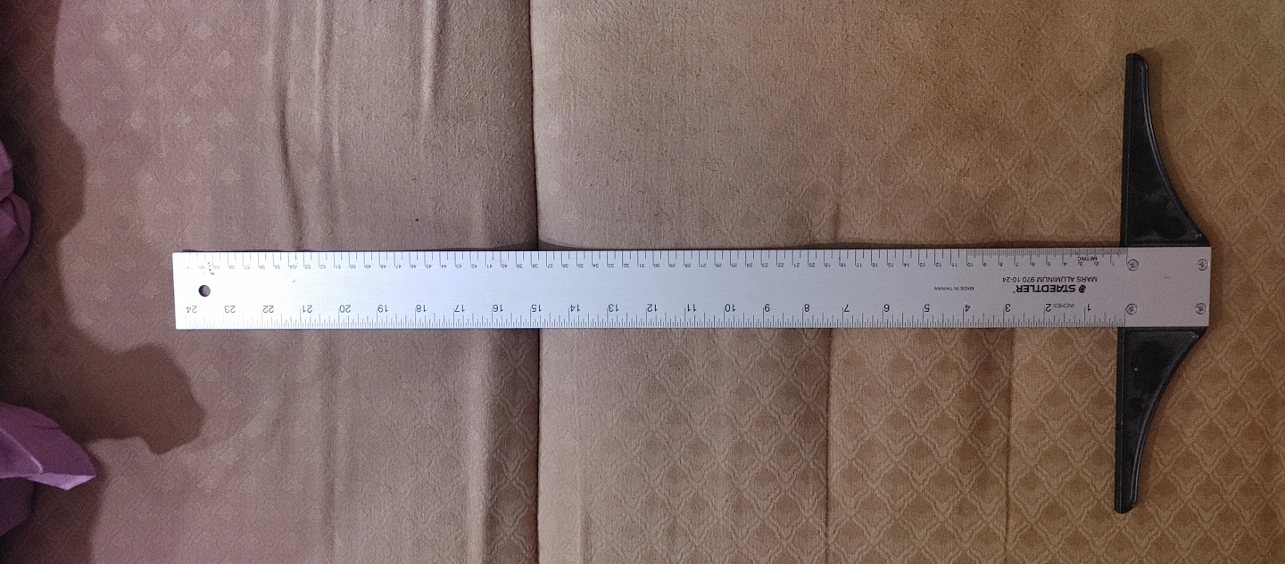 Metal ruler with T-square. Measurements in centimetres and inches. Stadler