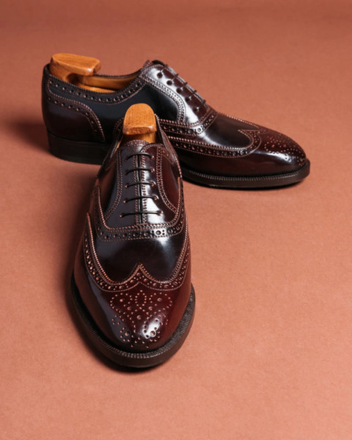 Selling a pair of Stafford burgundy wingtip dress shoes in size 9.5. These shoes feature a classic brogue design with intricate detailing. The leather upper and sole provide durability and a polished look. They are in great condition and ready to elevate your style!