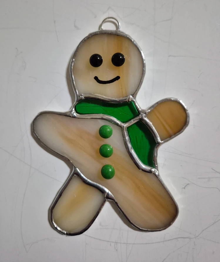 Buy & SellStained glass Gingerbread man Christmas tree ornamentStained glass Gingerbread man Christmas tree ornament$20Handmade Stained glass gingerbread man tree ornament, green scarf, approx size 3.25 by 4.25 inches. Pick up in Pickering, cash sale onlyConditionNew0 chats·0 favorites·2 viewsSELLERSheila RushLiverpool292 reviewsWHERE TO MEETPickering