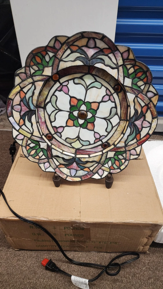 Beautiful stained glass Tiffany style table lamp. It's in great condition and would add a touch of elegance to any room, in a box.