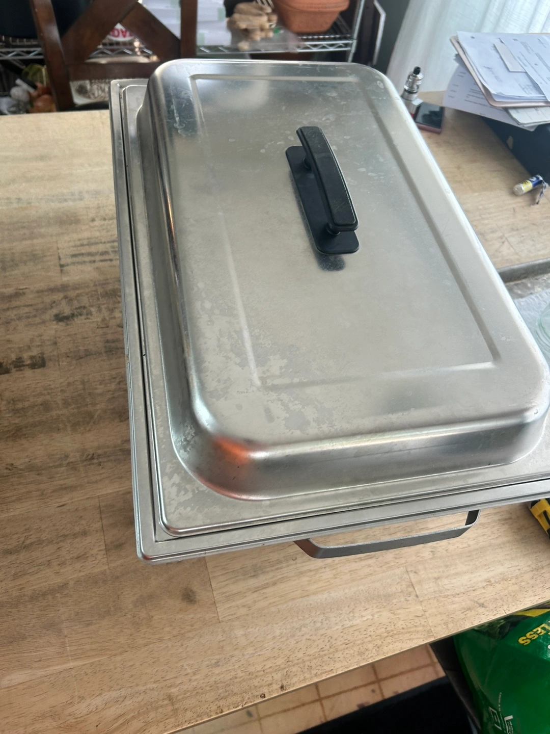 Selling a stainless steel chafing dish. Perfect for keeping food warm at gatherings or events. It's in great condition and ready to use!